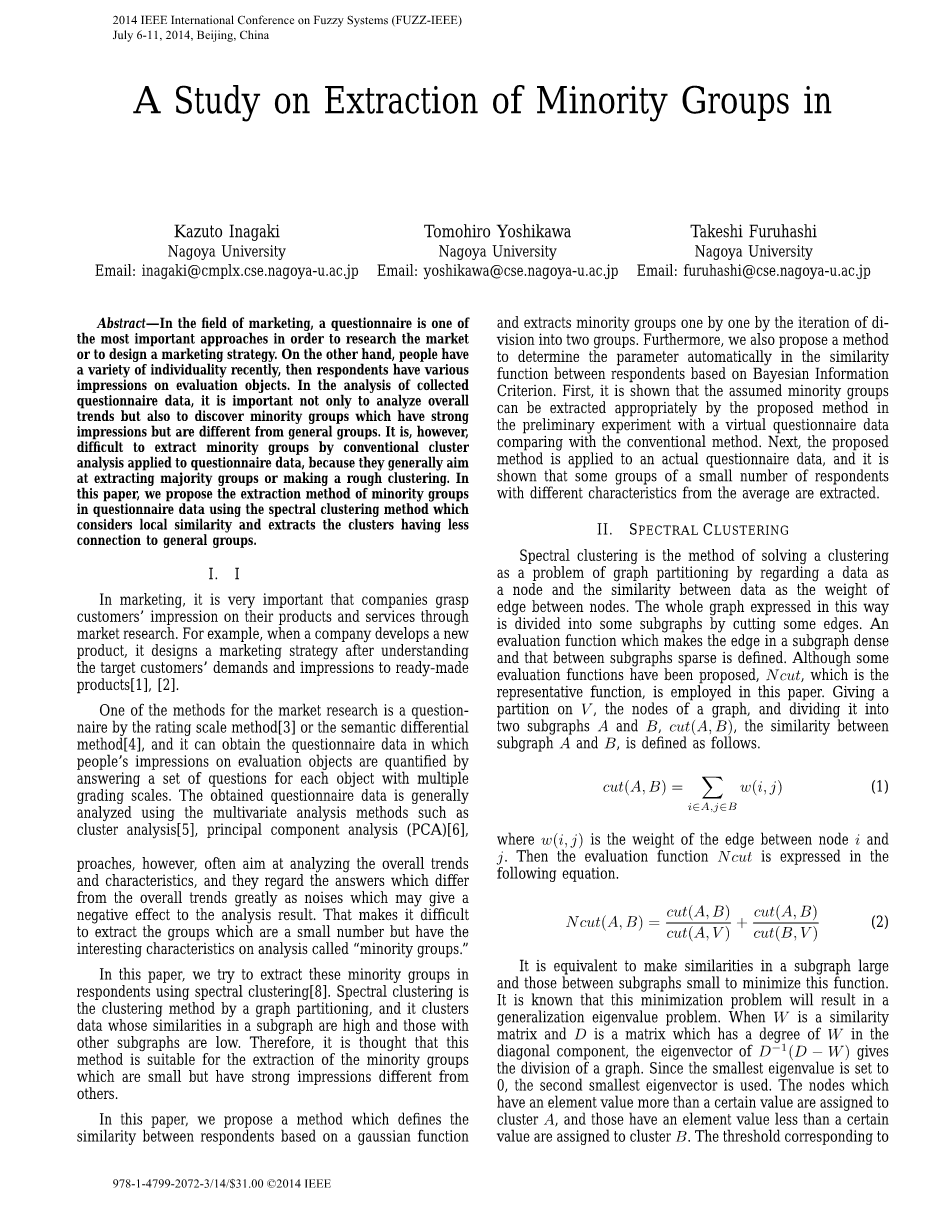 Takeshi Furuhashi 名古屋大学 电子邮件:furuhashi@cse.nagoya-u.ac.jp