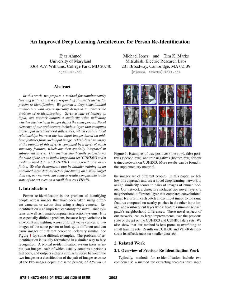 据我们所知,之前有两篇文章也使用深度学习方法进行重新识别: