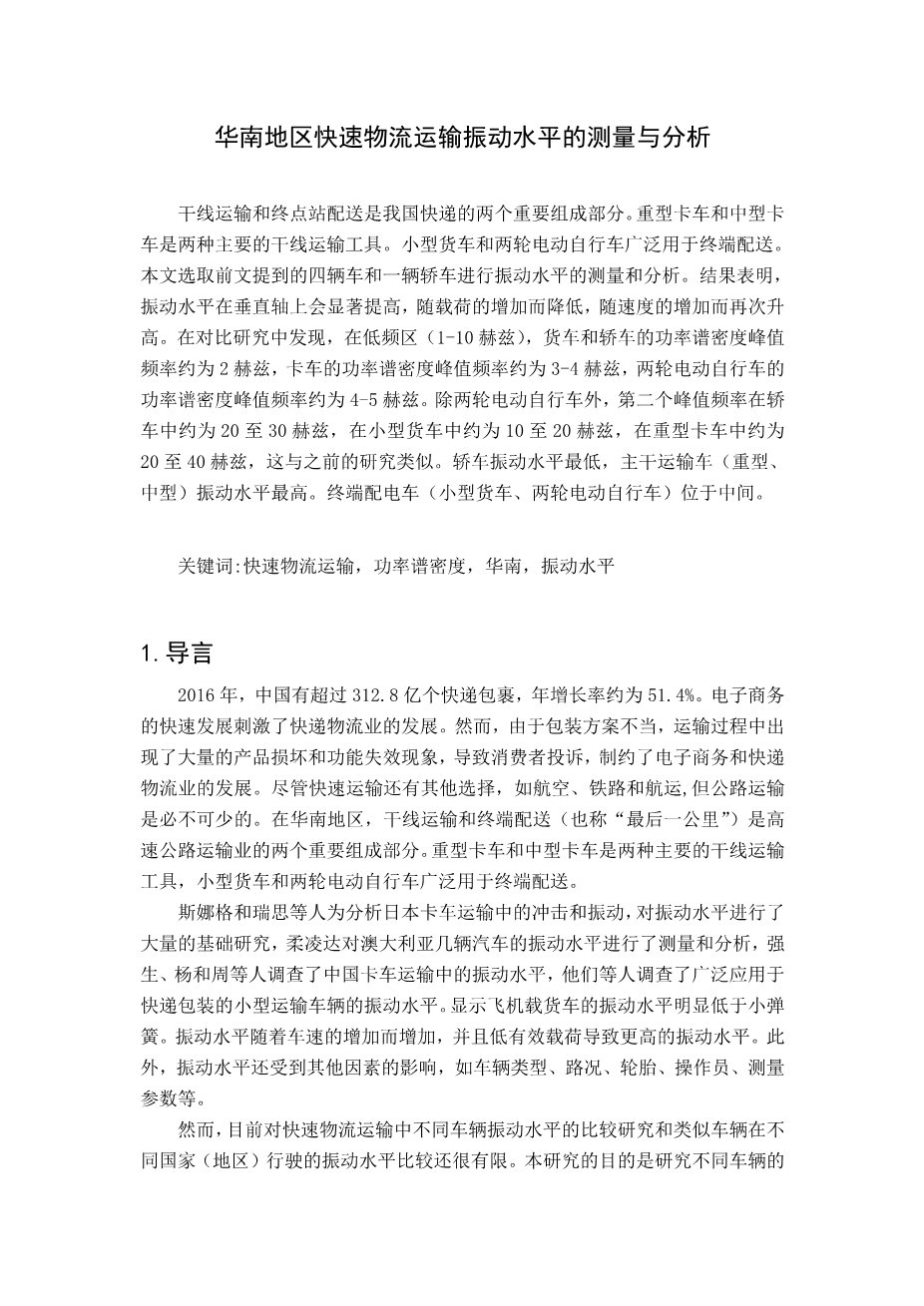 华南地区快速物流运输振动水平的测量与分析外文翻译资料 2023-01-30 11:22:56 英语译文共 21 页,剩余内容已隐藏,支付完成后下载完整资料 资料编号:[237330],资料为PDF文档或Word文档,PDF文档可免费转换为Word 原文和译文剩余内容已隐藏,您需要先支付 30元 才能查看原文和译文全部内容!立即支付 发小红书推广免费获取该资料资格。点击链接进入获取推广文案即可: Ai一键组稿 | 降AI率 | 降重复率 | 论文一键排版 PREVIOUS NEXT 您可能感兴趣的文章 食品包装用生物纳米复合材料:生物聚合物和纳米填料外文翻译资料 华南地区快速物流运输振动水平的测量与分析外文翻译资料 包装设计外文翻译资料 可拆卸光纤接合盘外文翻译资料 关于使用椰子纤维作为运输包装的缓冲材料的测试外文翻译资料 研究混合动力电动汽车的振动和噪声外文翻译资料 中国传统节日时令商品的包装设计外文翻译资料 装配规划的可重构装配模型及其调整方法外文翻译资料 现状和未来发展趋势外文翻译资料 颗粒包装机包装部件设计外文翻译资料