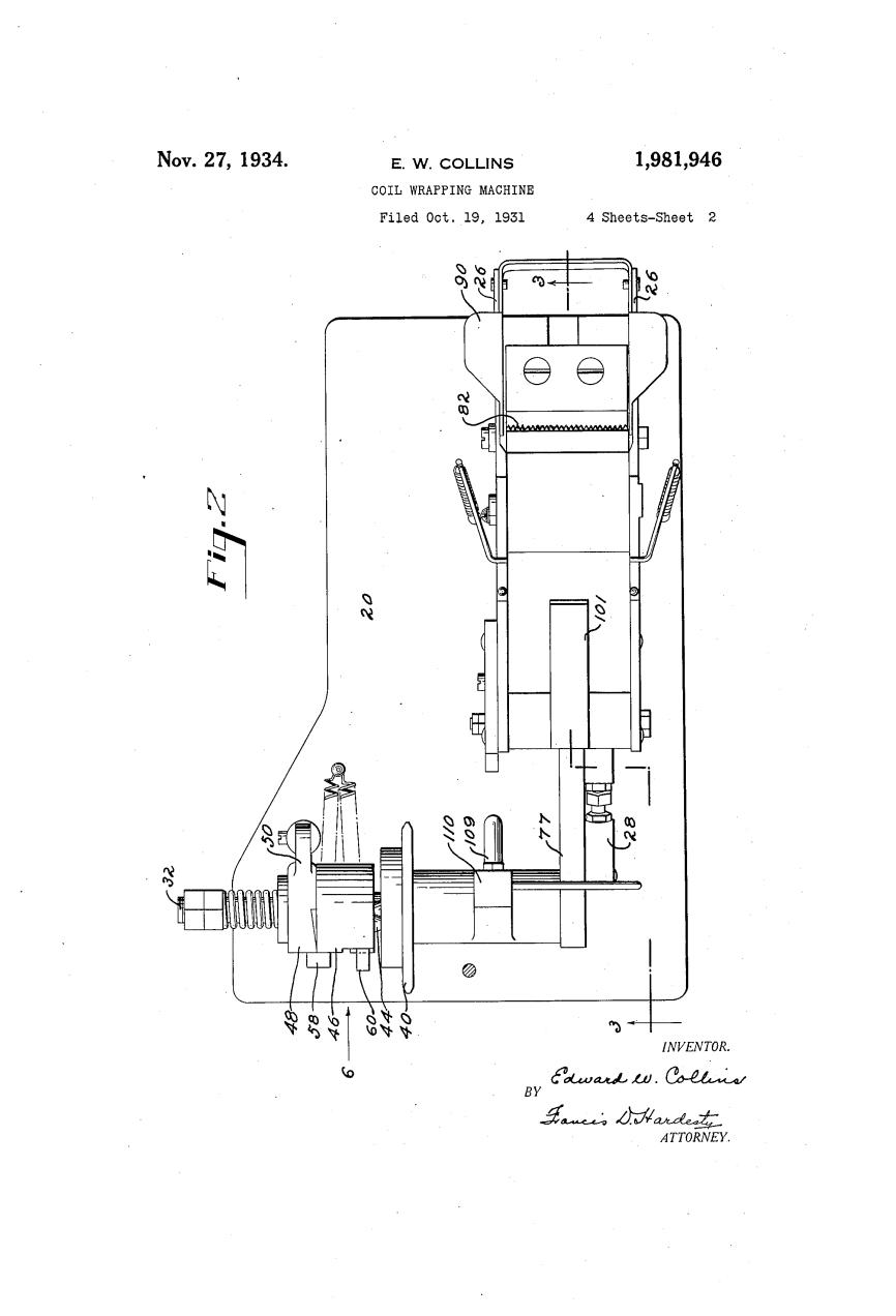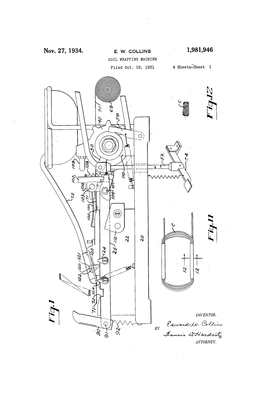 本产品是一个涉及线圈的发明制造,更具体的说,是一个涉及围绕成型线圈的有源侧短带纸的缠绕。本发明的目的之一是提供一种线圈包装机,其装机简单,操作可靠,且制造经济,是对 Jasper F. Cullin 的专利公开的包装机的改进,其专利编号为 No. 1,380,531,1921年6月7日。
