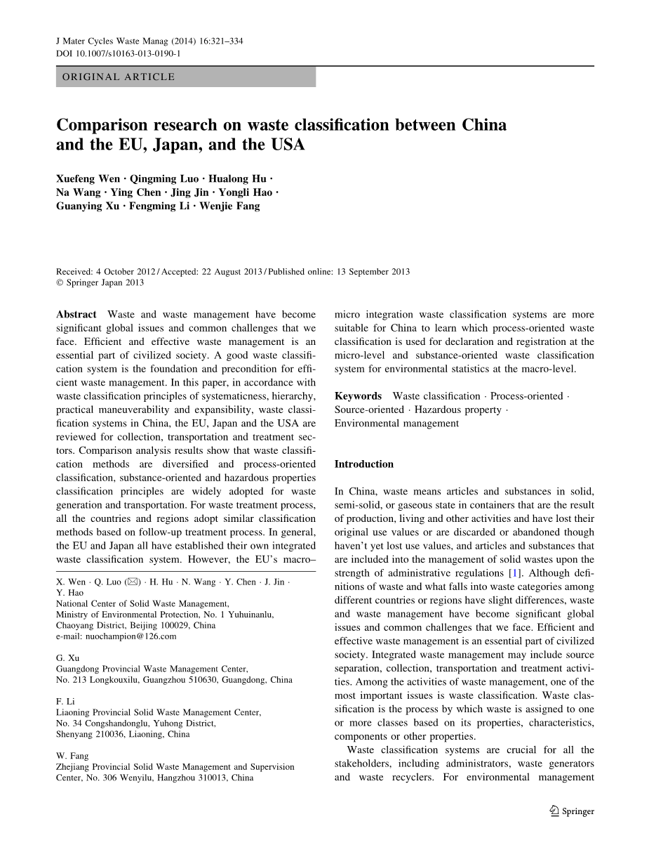 中国,欧盟,日本和美国垃圾分类比较研究外文翻译资料