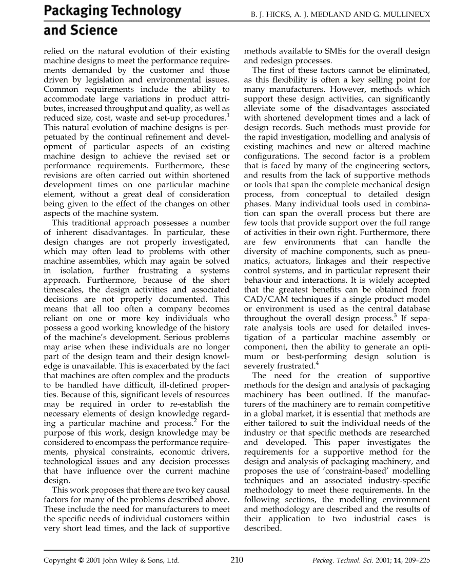 本文概述了对包装机械设计和分析的支持方法的建立。如果机器的制造厂商在全球市场上保持竞争力,那么关键的方法是根据行业的个人需求或具体的方法进行研究和开发。本文研究了对包装机械设计和分析的支持方法的要求,并提出了使用基于约束的建模技术和相关的行业专用方法来满足这些要求。在接下来的部分中,描述了建模环境和方法,并描述了它们在两个工业案例中的应用结果。