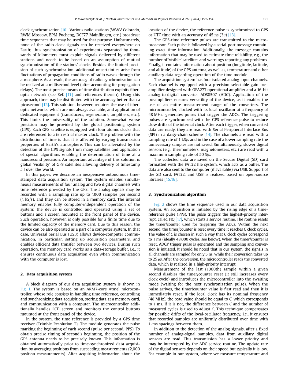 在本文中,我们描述了一个廉价的自主时间戳数据采集系统。该系统能够同时测量四个模拟和两个数字通道,并提供由GPS提供的时间参考。模拟信号可以采样率高达每秒1000个样本(1 kS / s)进行记录,并且可以存储在存储卡中。内部存储器可实现系统完全独立于计算机的操作;该设备使用一组按钮和安装在设备前面板上的屏幕进行控制和操作。然而,由于存储卡容量有限,这种操作只能在有限的时间内进行。由于这个原因,该设备也可以作为计算机系统的一部分进行操作。在这种情况下,通用串行总线(USB)允许设备与计算机之间的通信,特别是设置采集参数,并实现两个设备之间的高效数据传输。在这种操作过程中,存储卡作为数据存储缓冲器工作,即,即使与计算机的通信丢失,也能确保连续的数据采集。