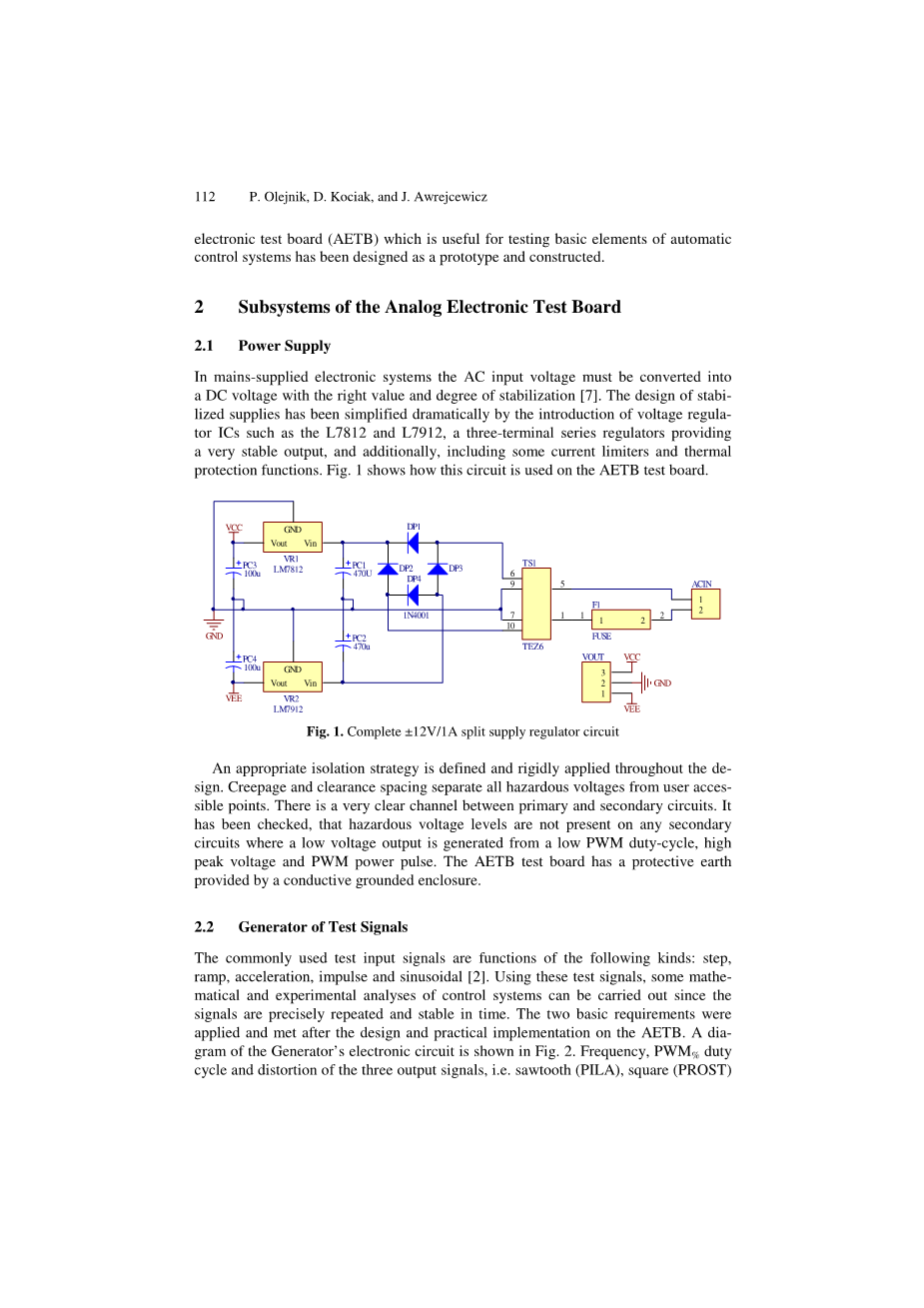 在市电电子系统中,交流输入电压必须转换成具有正确的稳定值和稳定度的直流电压[7]。通过引入稳压器集成电路(如L7812和L7912),三端串联稳压器提供非常稳定的输出,并且还包括一些限流器和热保护功能,稳压电源的设计大大简化。图1显示了如何在AETB测试板上使用该电路。
