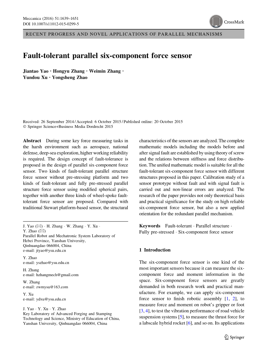 关键词 容错 并联 结构 全预应力 六维力传感器