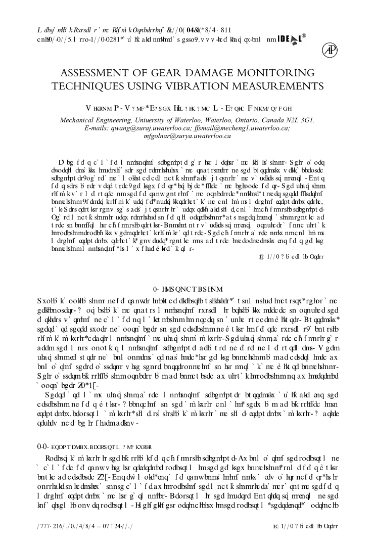 在许多情况下被证明是非常成功的技术。另外,kurtosis的相位调制及其派生也可用于齿轮故障诊断[7,8]。伊斯梅尔等人。 [9]使用贝塔函数的峰度强调瞬态产生的牙齿裂缝。他们还提出了一个统计指标来评估齿轮损伤。 Golnaraghi等人。 [10]从混沌动力学和非线性时间序列分析中引入了一个新思想以检测系统动态的全球变化。此外,Lin等人[11]研究了这些影响,齿轮齿裂纹对齿轮箱振动信号的相关维度具有影响。然而,[10,11]中的实验证据是有限的,并且建议进行进一步的研究这两个作品。