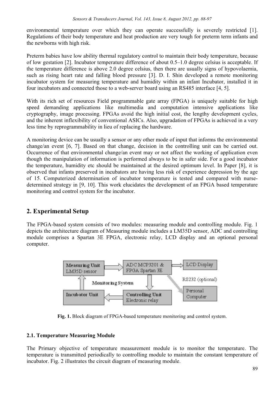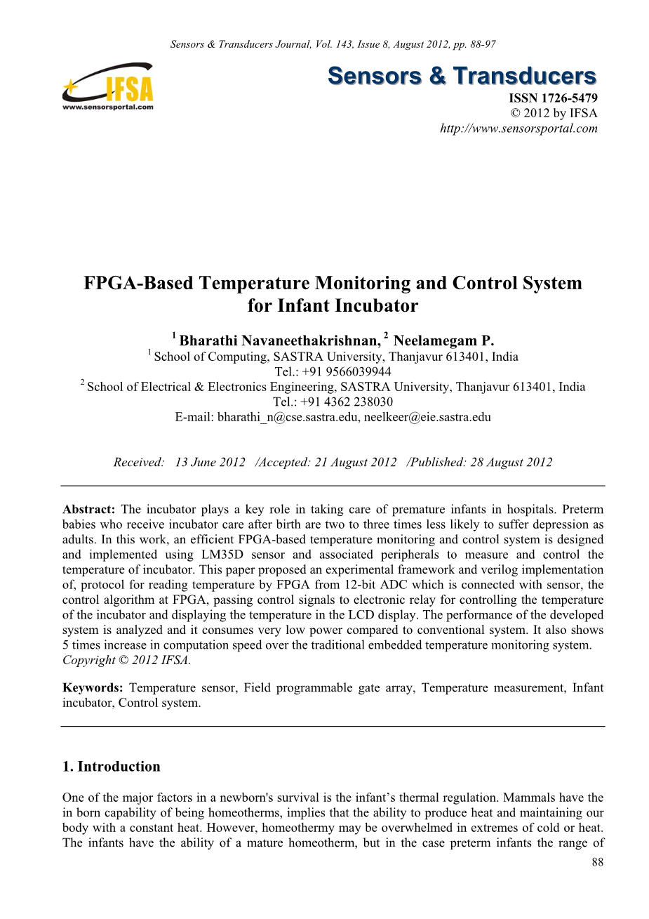 关键词:温度传感器,现场可编程门阵列,温度测量,婴儿培养箱,控制系统。