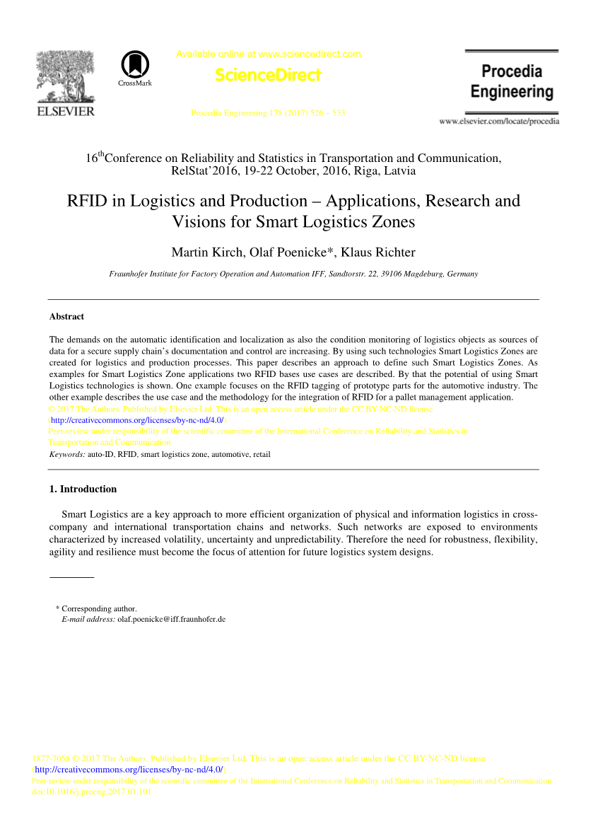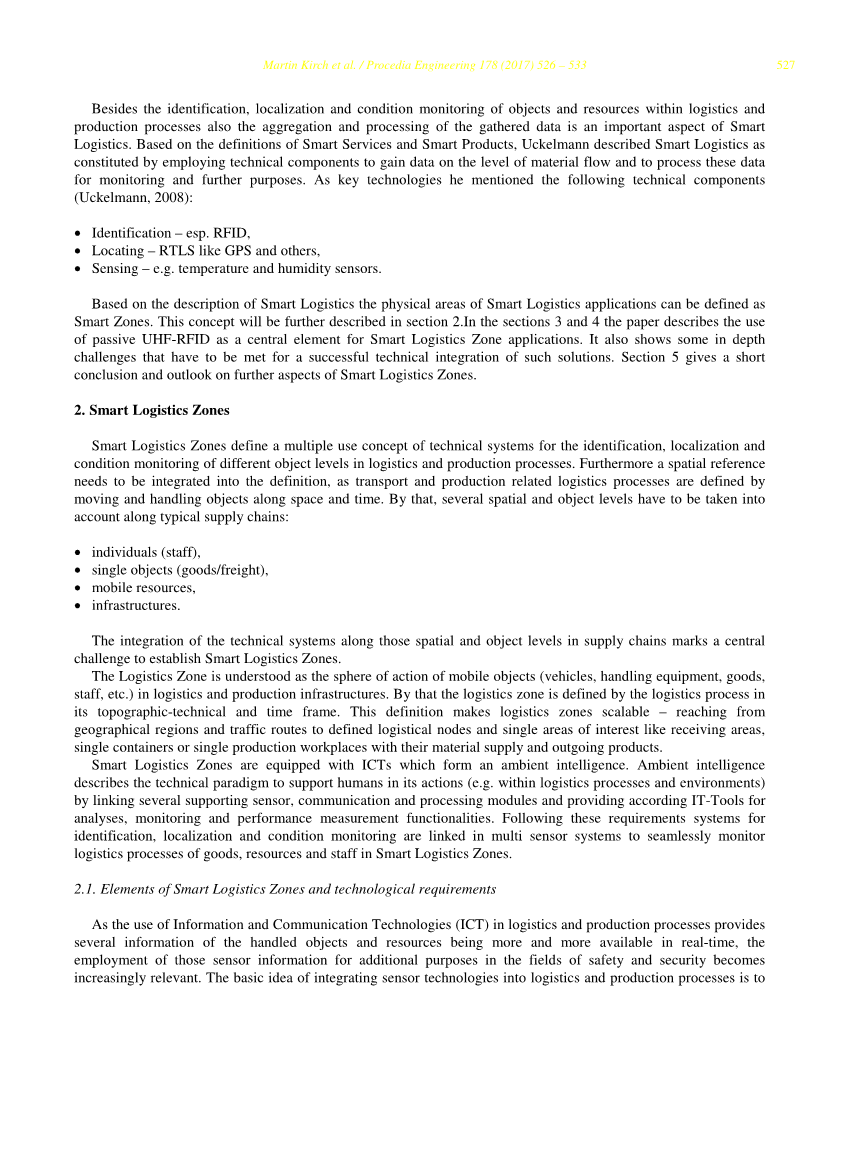 基于智能物流的描述,智能物流应用的物理区域可以被定义为智能区域。这个概念将在第2节中进一步描述。在第3节和第4节中,本文描述了使用无源UHF-RFID作为智能物流区应用的核心元素。它还显示了一些成功的技术整合这些解决方案必须满足的深度挑战。第五部分对智能物流区的其他方面进行了简要总结和展望。