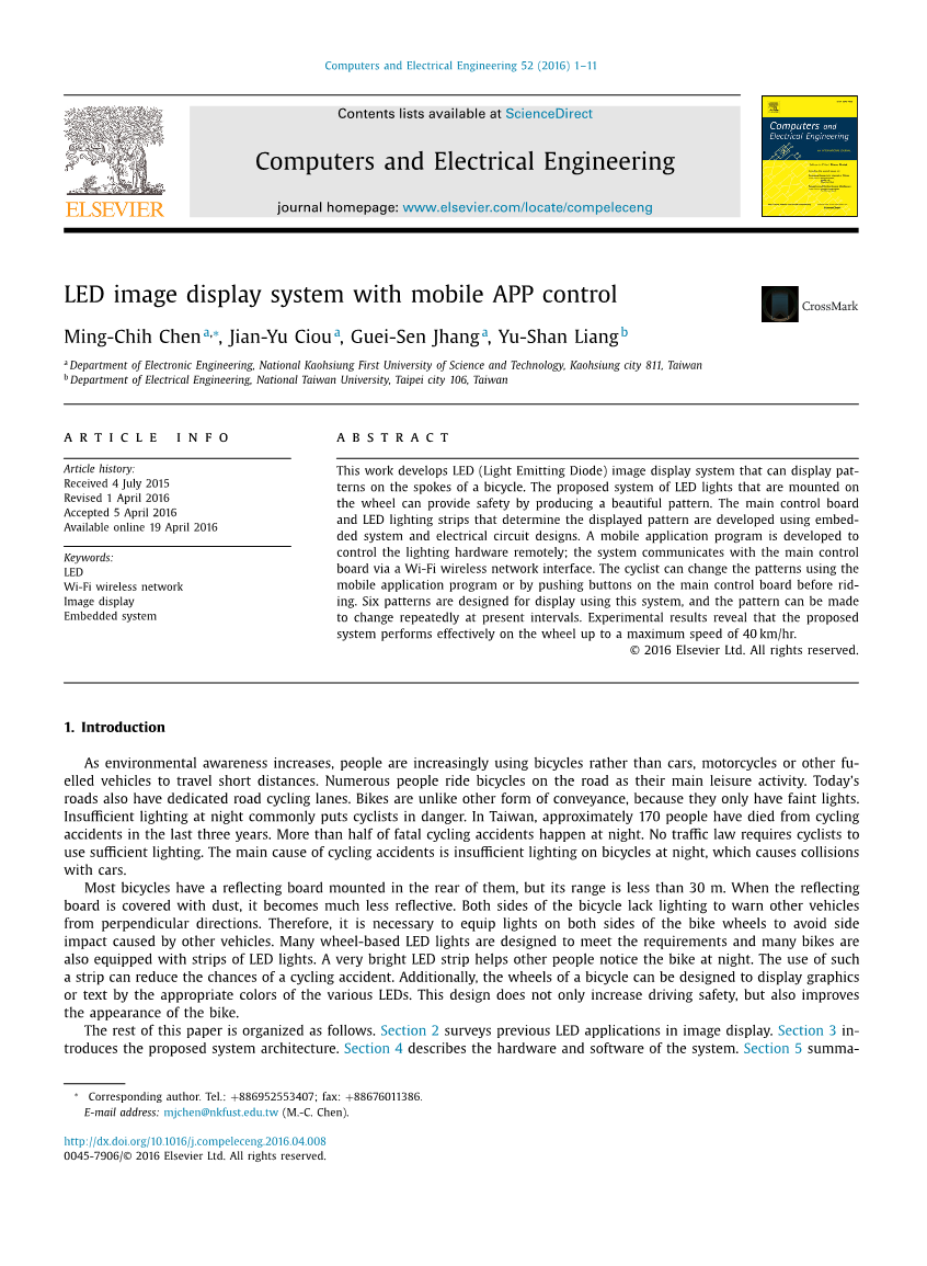 摘要: 此次设计的LED(发光二极管)图像显示系统,可以在自行车辐条上显示图案。人们在车轮的LED灯上设置此系统可以产生美丽的图案来提升安全性,该系统主要是在主控板上使用嵌入式系统和电路设计来设计可以显示图案的LED照明条。同时使用一个移动应用程序来远程控制照明硬件,该系统与主控制器通过Wi-Fi无线网络接口来实现通信。骑自行车的人可以用这个移动应用程序或在骑行前按主控板上的按钮来改变图像显示模式。该系统设计了六种图案用于显示,并且可以设置图案按一定时间间隔反复变化。实验结果表明,设计的系统在车轮上有效地执行,可在40公里/小时以下的速度中有效工作。