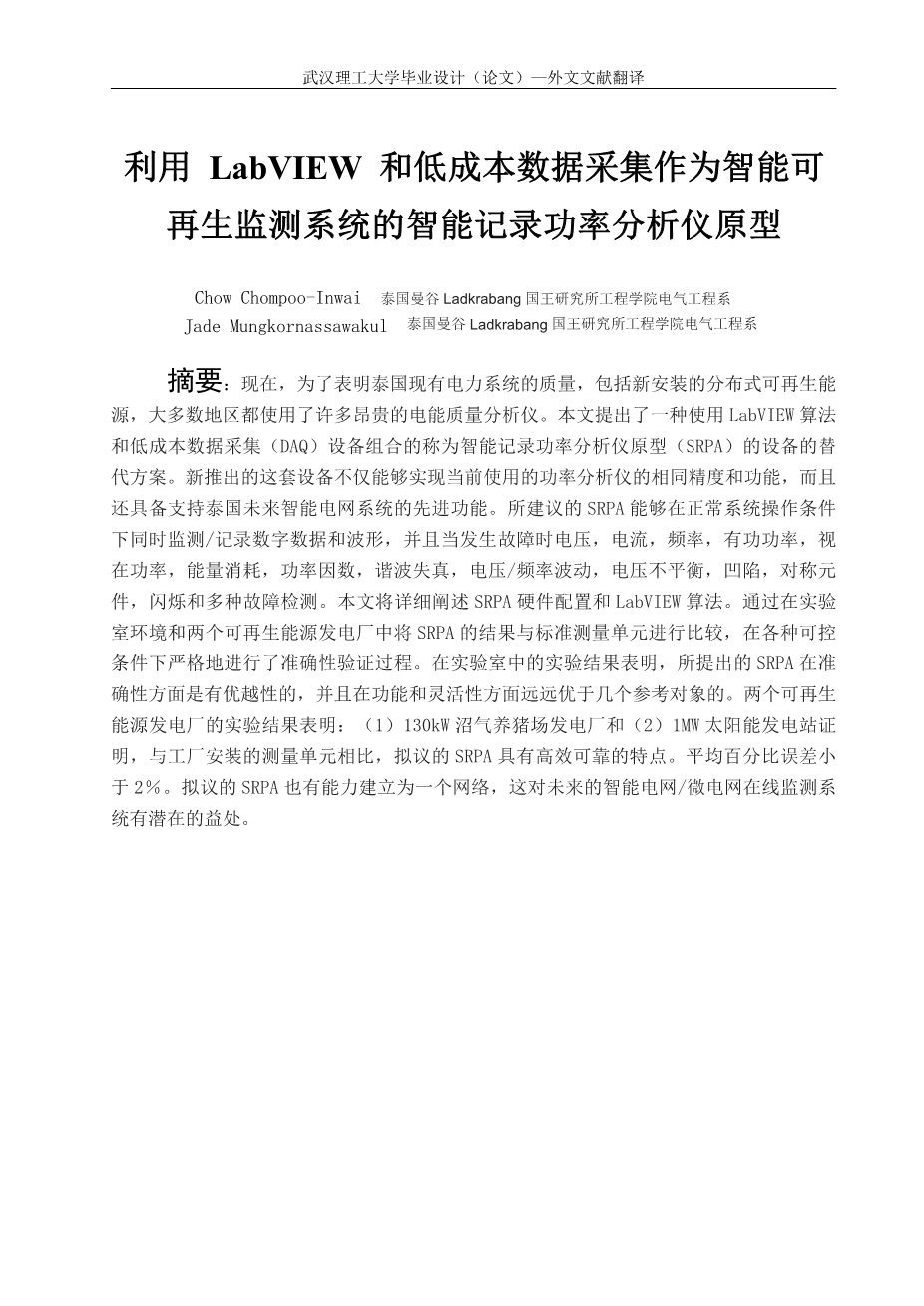- 基于LabVIEW和Matlab的小波变换对非平稳信号的分析仿真外文翻译资料