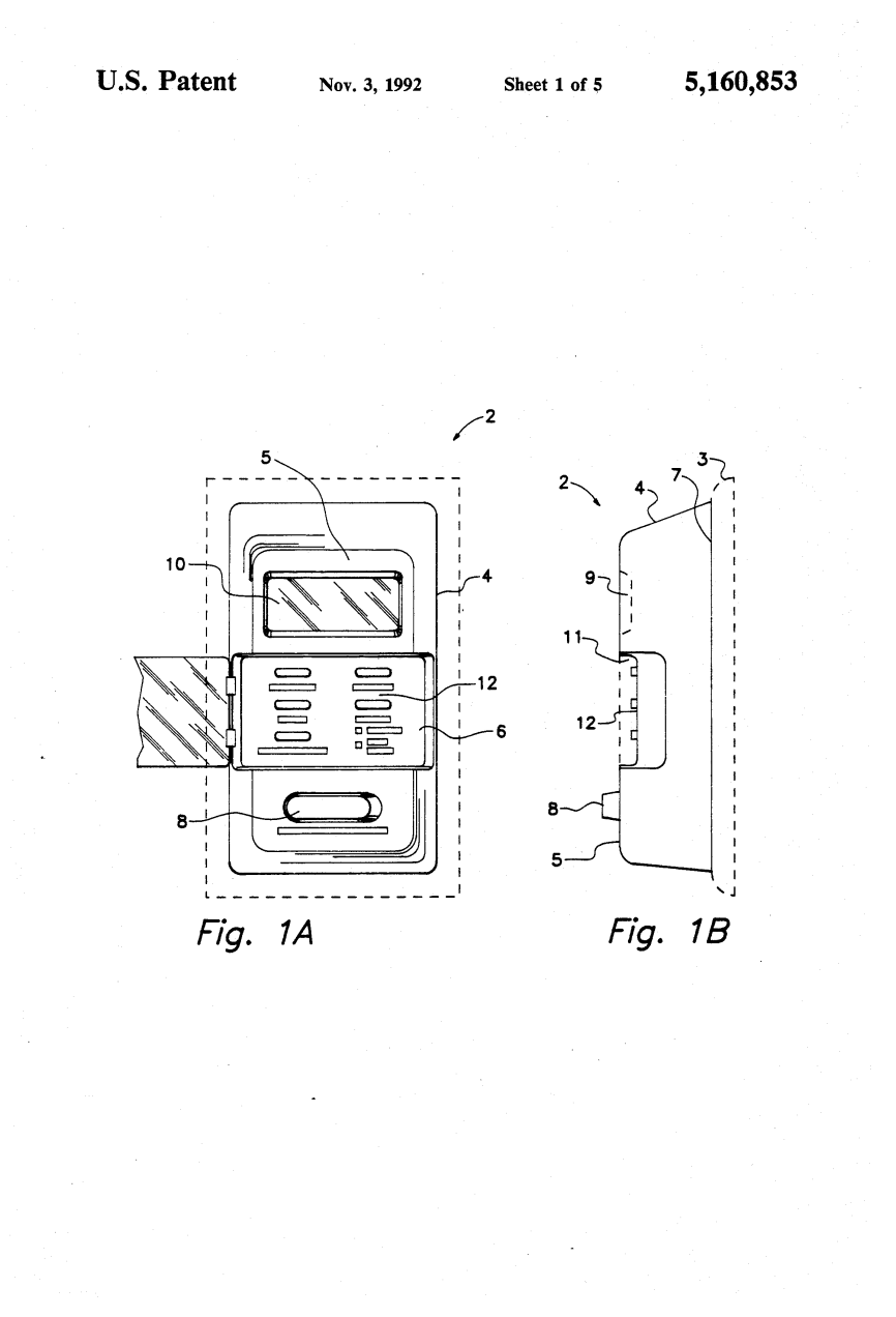 图1B是根据本发明的可编程电子定时器的侧视图。 可编程定时器2被示出为安装在墙壁3上。定时器2包括壳体4,壳体4具有构造成在墙壁3上齐平安装以替代标准灯开关的后部7。
