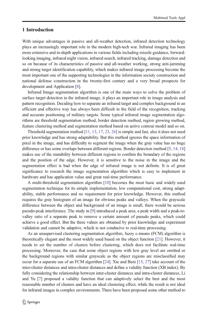 另外,随着新技术和新理论的发展,红外图像分割算法中的目标也得到了扩展,出现了许多基于特定理论工具的新的分割算法。由于这些算法大多针对特定的问题,目前还没有通用的分割理论。