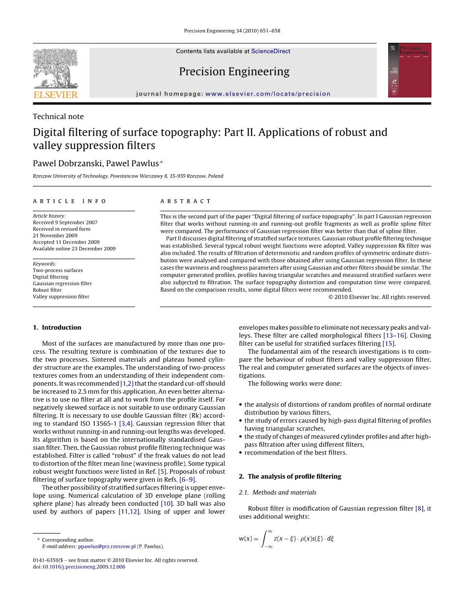 表面轮廓数字滤波:第二部分 鲁棒和谷抑制滤波器的应用