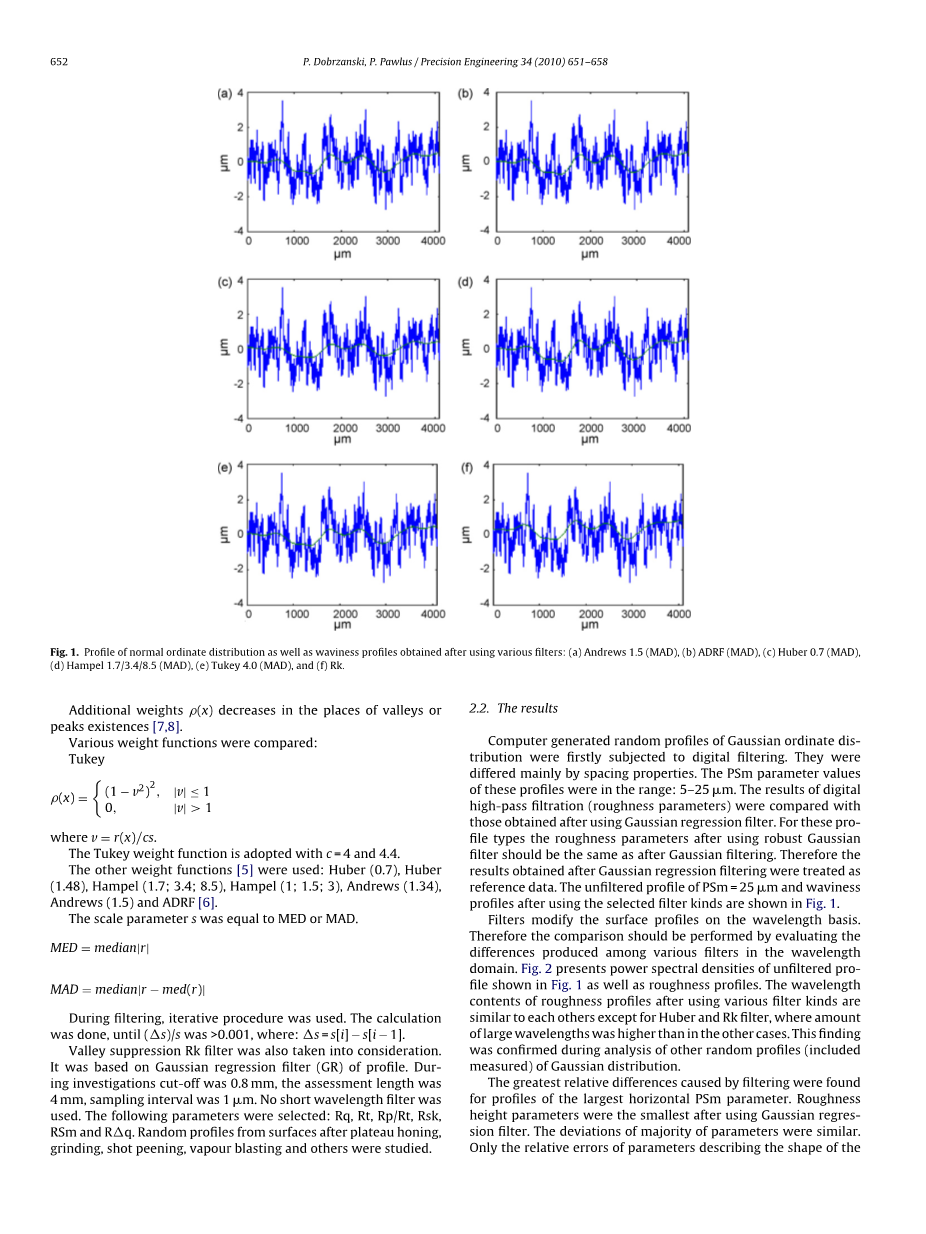 对于较大的波纹度,数字滤波引起的误差较大。粗糙度剖面的大畸变发生在最大波长的剖面上。一般来说,尺度参数从MED(Rq的最大误差为20%)到MAD(Rq的最大误差为15%)的变化减少了由稳健滤波引起的大多数参数(RSm参数为豁免)的误差。