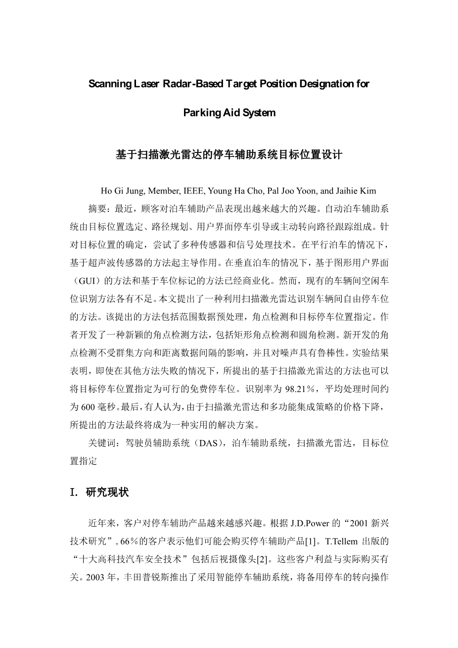 多传感器辅助泊车系统设计外文翻译资料