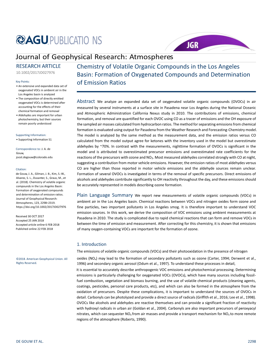 在我们的配套论文中讨论了测量地点和气象学(de Gouw et al。,2017)。简而言之,这项研究于2010年5月15日至6月15日在加利福尼亚州帕萨迪纳市的理工学院校园内进行。白天,采样的空气质量来自洛杉矶盆地西部,将排放物从洛杉矶市中心运至网站。到了晚上,风平浪静,采样的空气质量包含了以帕萨迪纳为中心的区域的排放物。