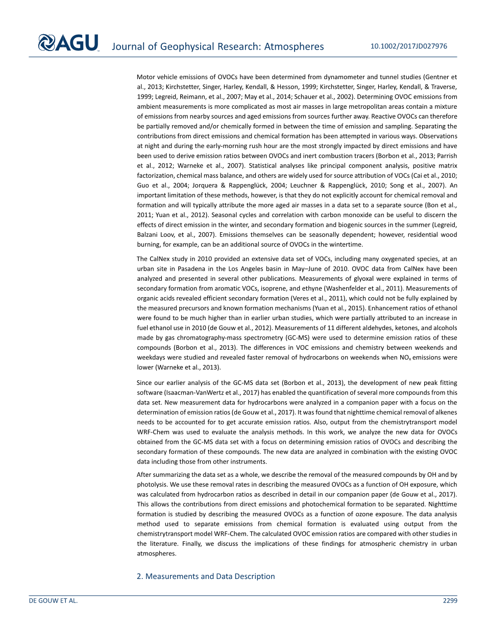 - 使用双通道原位GC-MS测量了大量烷烃,烯烃,芳烃和OVOC(Borbon等人,2013 ; de Gouw等人,2017 ; Gilman等人,2010 ; Goldan等人,2004年)。