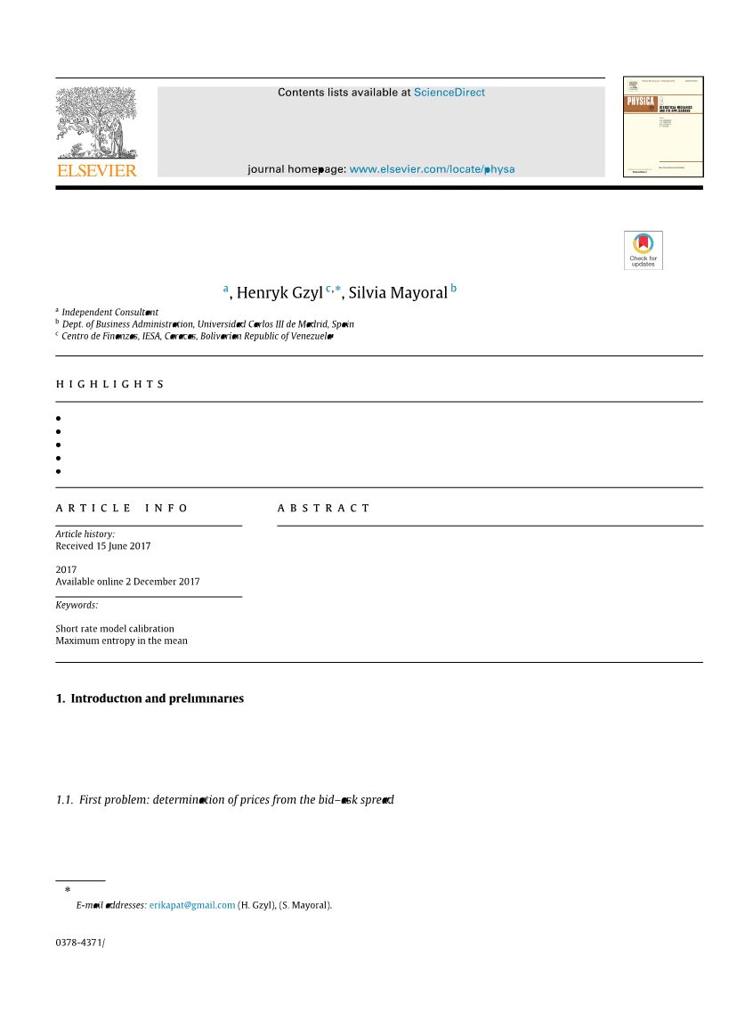 ErikaGomes-Gonccedil;alves; Henryk Gzyl; Silvia Mayoral