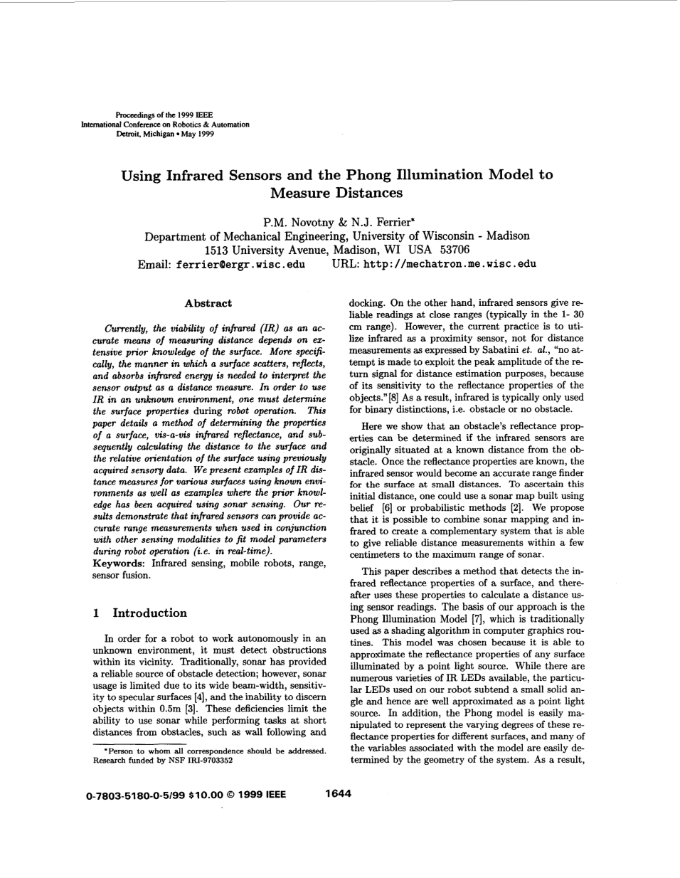关键词:红外传感、移动机器人、范围、传感器融合。