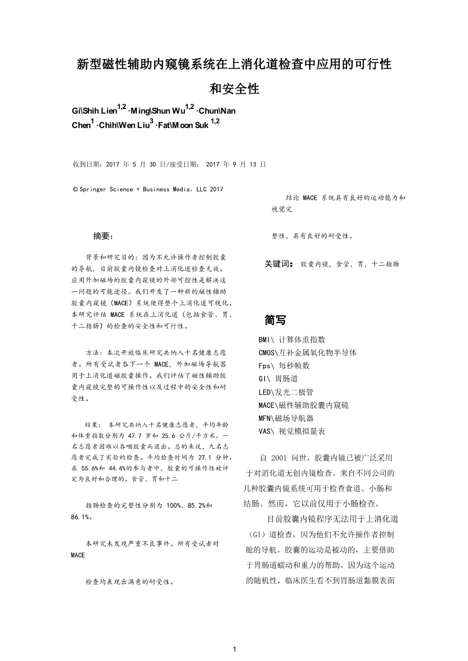 - 新型磁性辅助内窥镜系统在上消化道检查中应用的可行性 和安全性外文翻译资料
