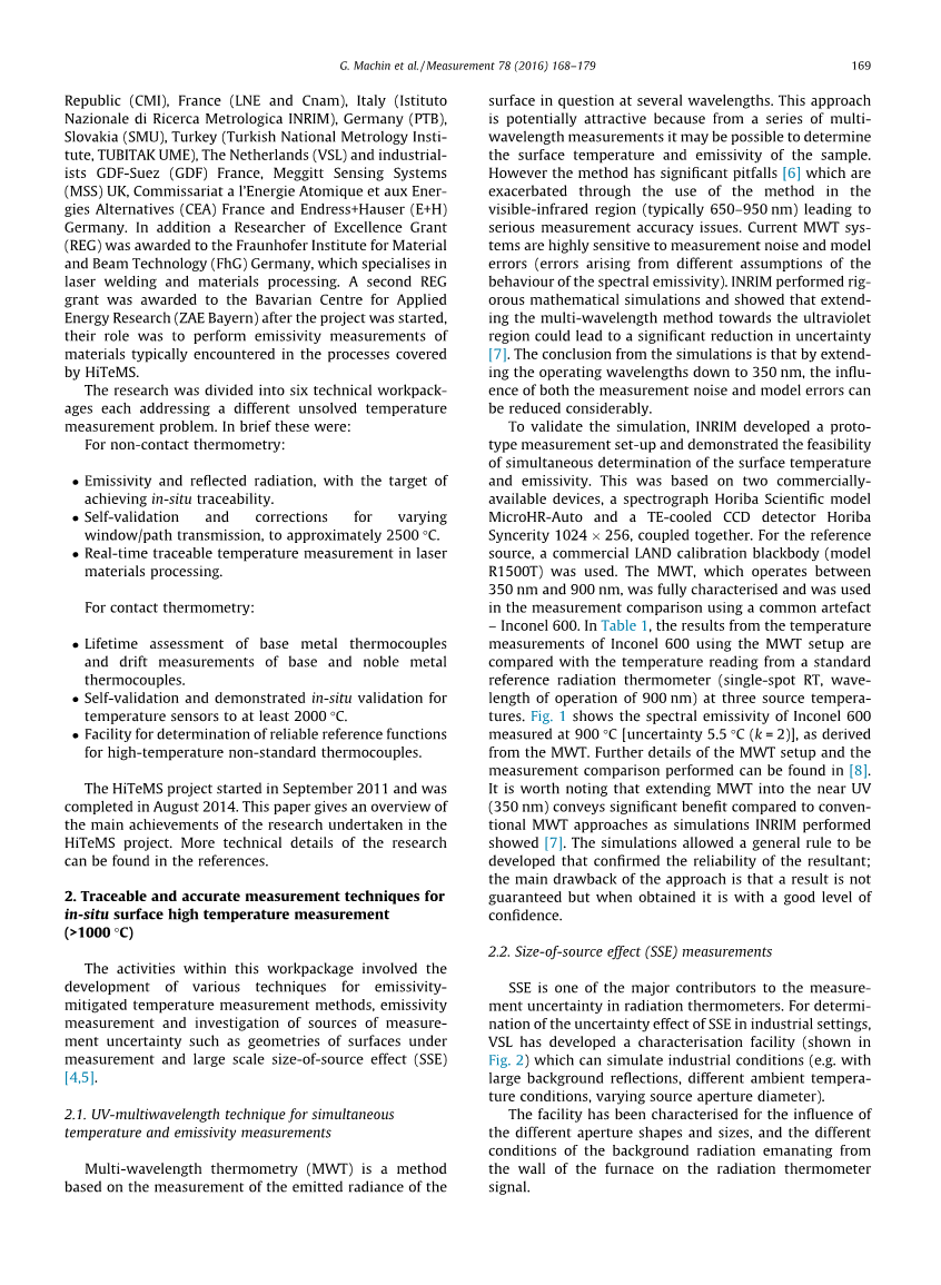 Hitems[2,3]通过开发一套方法和技术来解决这个问题,这些方法和技术有可能显著改进工业高温非接触和接触测温的实践,至少达到2500℃。特别强调通过解决未知M等问题来促进原位可追溯性。材料发射率、传感器漂移和(/或)未量化的传输变化。