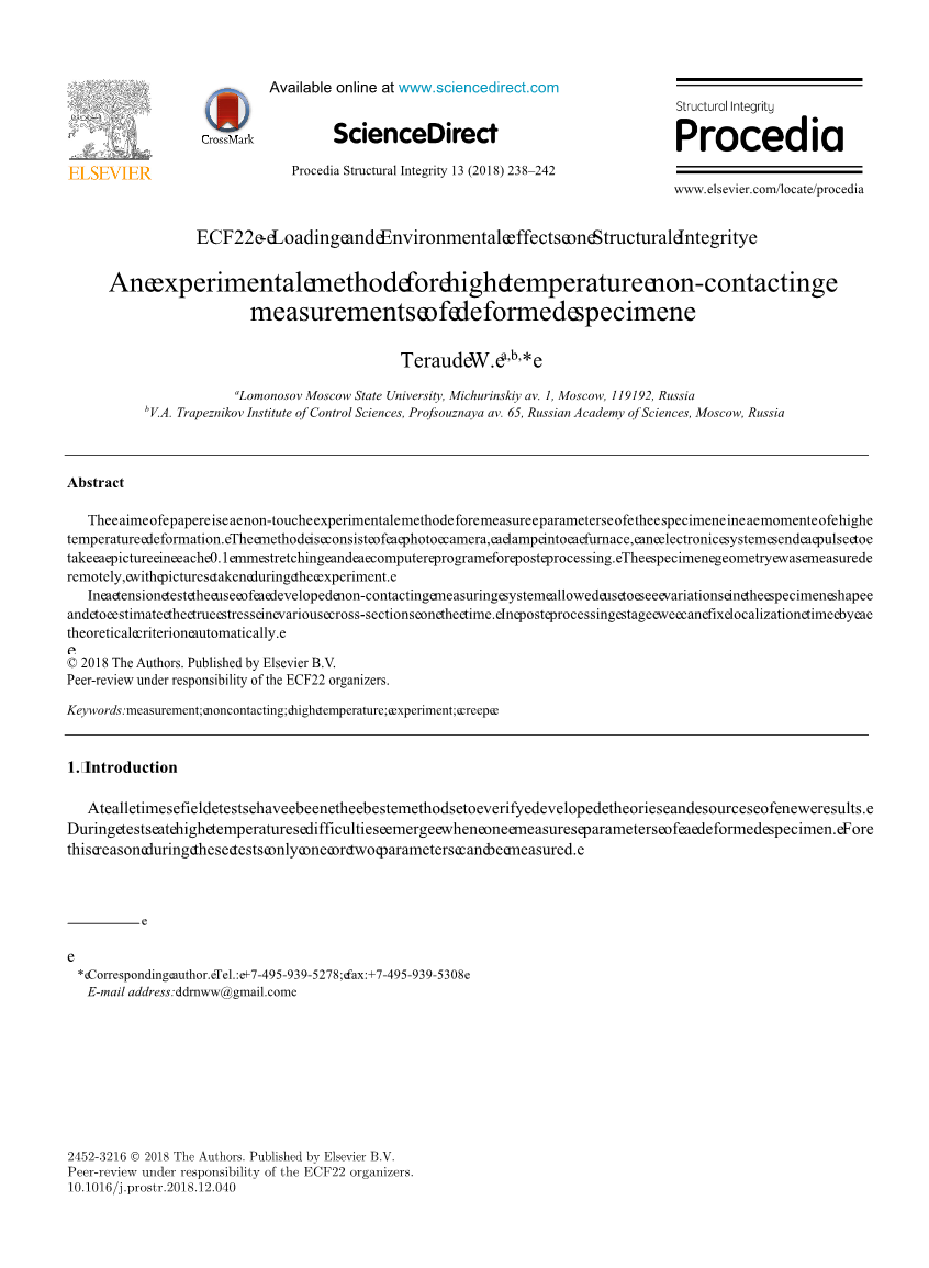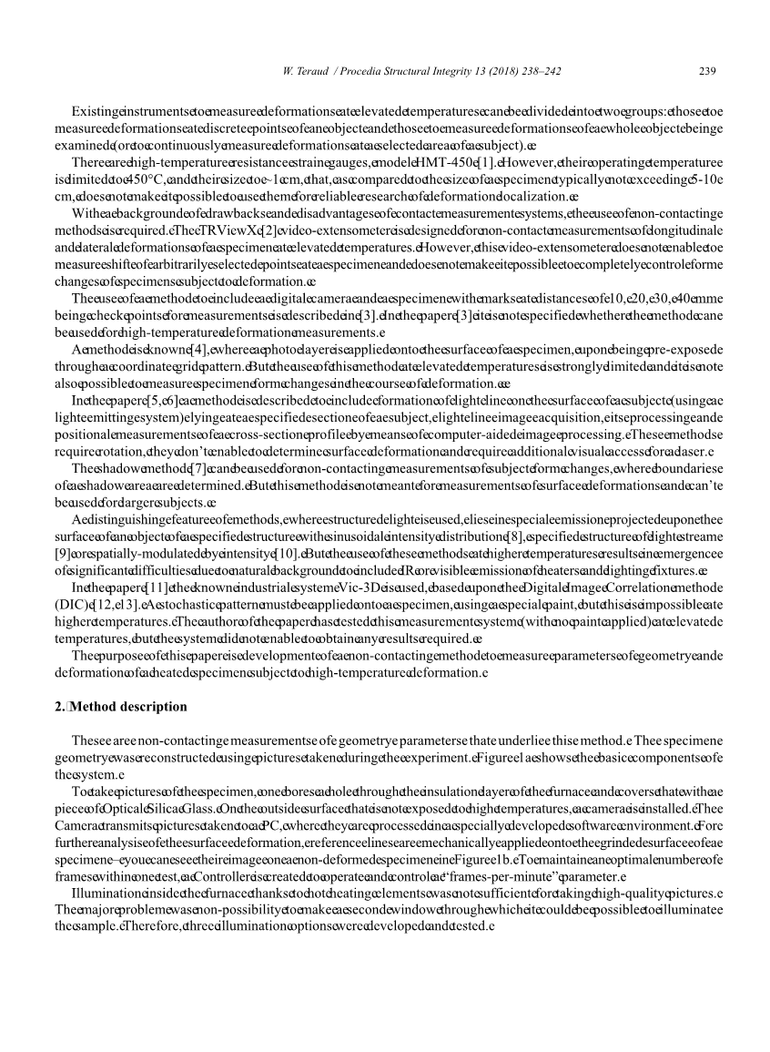 在任何时候,现场测试都是验证已开发理论和新结果来源的最佳方法。在高温测试期间,当测量变形样品的参数时会出现困难。 因为这个原因在这些测试中只能测量一个或两个参数。在高温下测量变形的现有仪器可以分为两组:测量物体离散点处的变形以及测量整个物体变形的变形检查(或连续测量受试者选定区域的变形)。有耐高温应变计,型号НМТ-450 [1]。但是,它们的工作温度限制在450°C,其尺寸为~1 cm,与通常不超过5-10厘米的样本相比,不能用它们进行变形定位的可靠研究。具有接触测量系统的缺点和缺点的环境,使用非接触方法是必需的。 TRViewX [2]视频中的引伸计设计用于纵向的非接触式测量在高温下试样的横向变形。但是,这个视频引伸计无法实现测量试样上任意选择点的位移,并且不能完全控制形状受变形的试样变化。使用特定方法来包括数码相机和标记距离为10,20,30,40毫米的样本作为测量的检查点在[3]中描述。在论文[3]中没有说明该方法是否可以用于高温变形测量。已知方法[4],其中在预曝光后将照片层施加到样品的表面上通过坐标网格图案。但是这种方法在高温下的使用受到很大限制,而事实并非如此,也可以在变形过程中测量试样形状的变化。在论文[5,6]中,描述了一种方法,包括在受试者的表面上形成光线(使用发光系统)位于物体的指定部分进行光线图像采集,通过计算机辅助图像处理对横截面轮廓进行位置测量。这些方法要求旋转系统,它们不能确定表面变形并需要额外的视觉访问激光。阴影方法[7]可用于非接触式测量对象形式变化,其中边界确定阴影区域。但是这种方法不适用于表面变形的测量,也不能用于较大的科目。使用结构光的方法的一个显着特征在于投射在其上的特殊发射具有正弦强度分布的指定结构的物体表面[8],指定结构的光流[9]或通过强度进行空间调制[10]。但是在较高温度下使用这些方法会导致出现由于自然环境导致的重大困难包括IR或加热器和照明装置的可见光发射。在论文[11]中,基于数字图像相关方法使用已知的工业系统Vic-3D(DIC)[12,13]。必须使用特殊涂料在样品上施加随机图案,但这是不可能在更高温度下实现的。该论文的作者在温度升高时测试了这种测量系统(没有涂漆)的温度,但系统无法获得所需的任何结果。本文的目的是开发一种测量几何和参数的受热变形和高温变形的非接触方法。