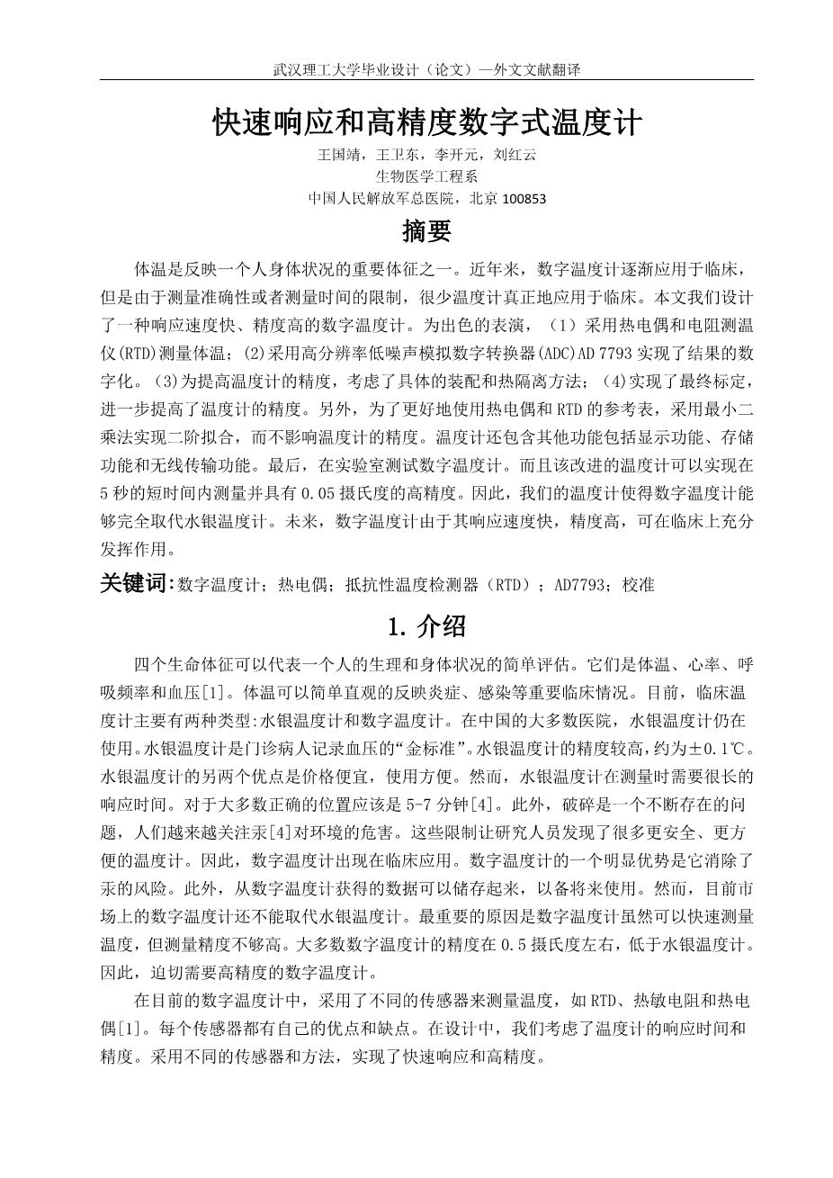 - 用于控制食物烹饪过程的电子系统.外文翻译资料