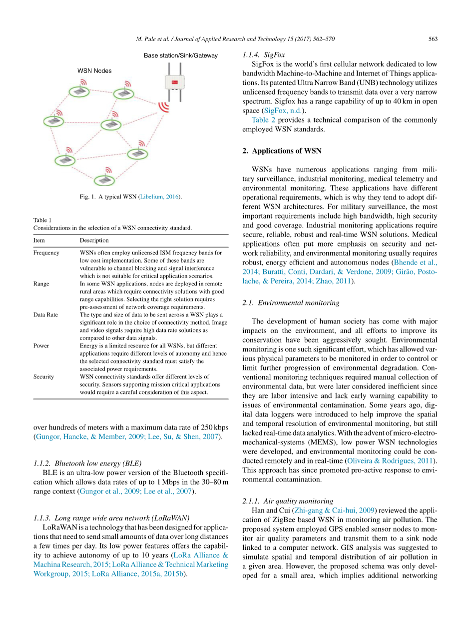 Shao,Liu和Zhang(2012)设计并开发了一个WSN系统,用于监控基于ARM-7 LPC2138供电传感器节点的工业污水处理系统。其通信范围可达1.5 km,功率输出为 25.99 dBm。然而,使用ARM-7微处理器的成本太高了,因为它除了执行应用程序代码外还运行操作系统,这还引入了额外的复杂计算,使得功率需求变高。此外,系统采用动态路由备份机制,这也导致了额外的处理和内存/存储开销,导致额外的电源需求。Khetre和Hate(2013)设计了一个WSN系统,设计了一套由测量水质的ARM 7从属节点参数组成的,用于监测湖泊水质的WSN系统。开发了一个双从原型,并利用ZigBee将数据传输到主终端。该系统是在浑水上测试,记录读数为30.6 NTU。所有其他参数都在实时图形中捕获。