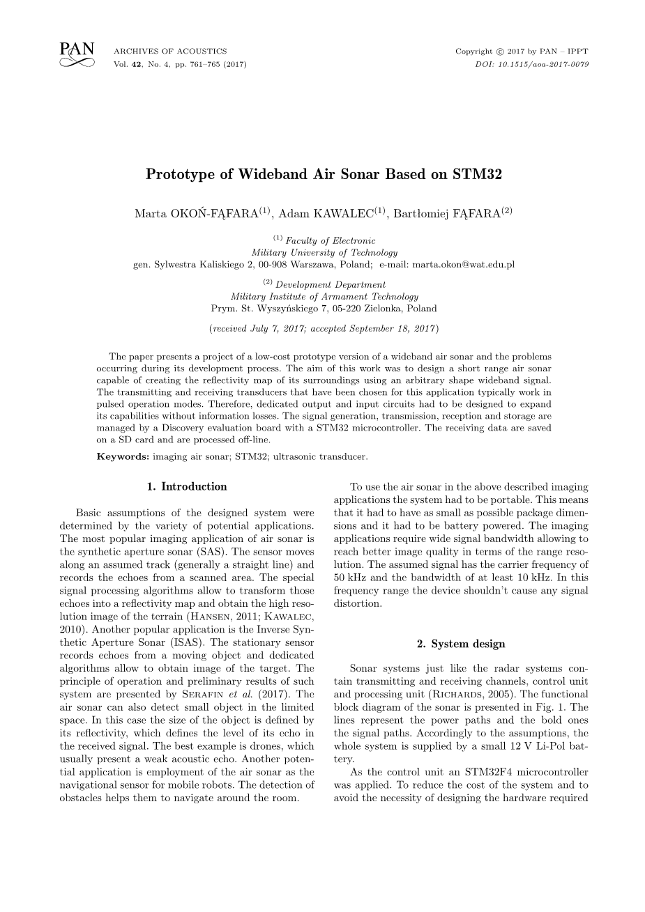 3. Kawalec A., Szugajew M., Serafin P. (2010), Synthetic aperture sonar [in Polish], Elektronika – konstrukcje, technologie, zastosowania, 10/2010, pp. 64–66.lt;