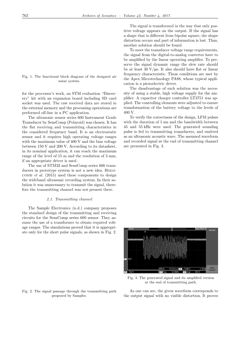 m . Okoń-Fąfara et al。基于STM32 763宽带航空声纳的原型设计的发射通道工作正常。此外,所需的150伏偏置电压是清楚地看到。