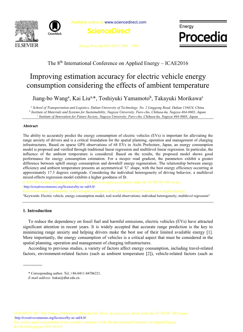准确预测电动汽车(EV)能耗的能力对于缓解驾驶员的里程焦虑非常重要,并且是充电基础设施空间规划,运营和管理的关键基础。 基于日本爱知县68个电动汽车的稀疏GPS观测数据,提出了一种能量消耗模型,并通过传统的线性回归和多级线性回归进行验证。 特别考虑了环境温度的影响。 基于该结果,所提出的模型在能耗估算中表现出良好的性能。 对于陡峭的道路坡度,参数在上坡能量消耗和下坡能量再生之间表现出更大的差异。 能效与环境温度之间的关系呈现不对称的#39;U#39;形状,最佳能量效率发生在大约17.5摄氏度。 考虑到驾驶行为的个体差异性,多级混合效应回归模型表现出更高的适合度。