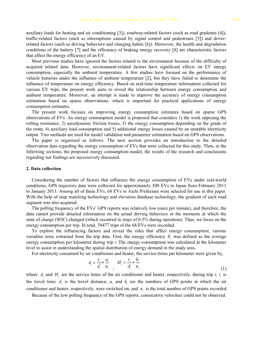 这里和分别是在旅程i期间空调和加热器的使用时间; 是驾驶时间;是驾驶距离;和分别是空调和加热器被打开时记录的GPS点的数量。