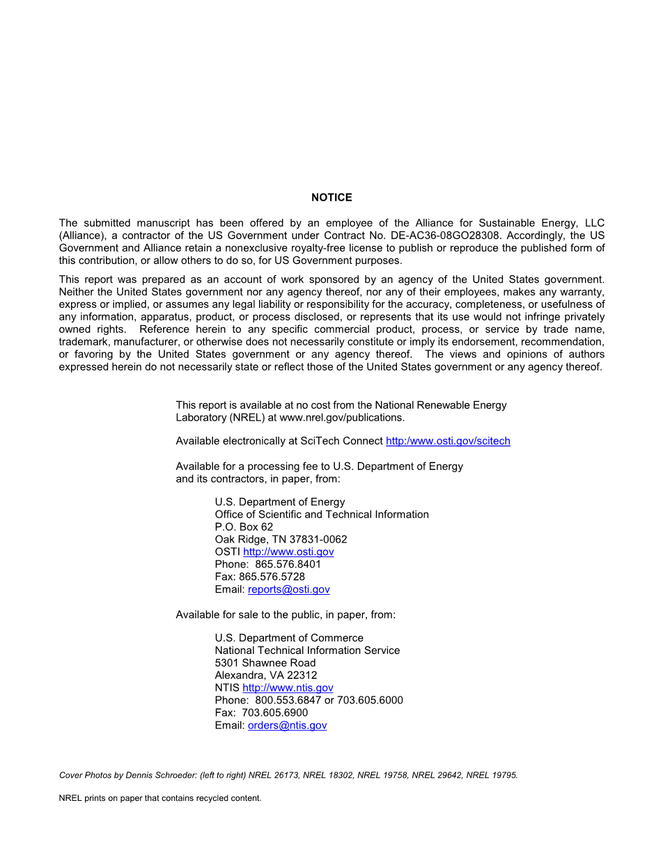 本报告可从国家可再生能源实验室(NREL)免费获取,网址为www.nrel.gov/publications。