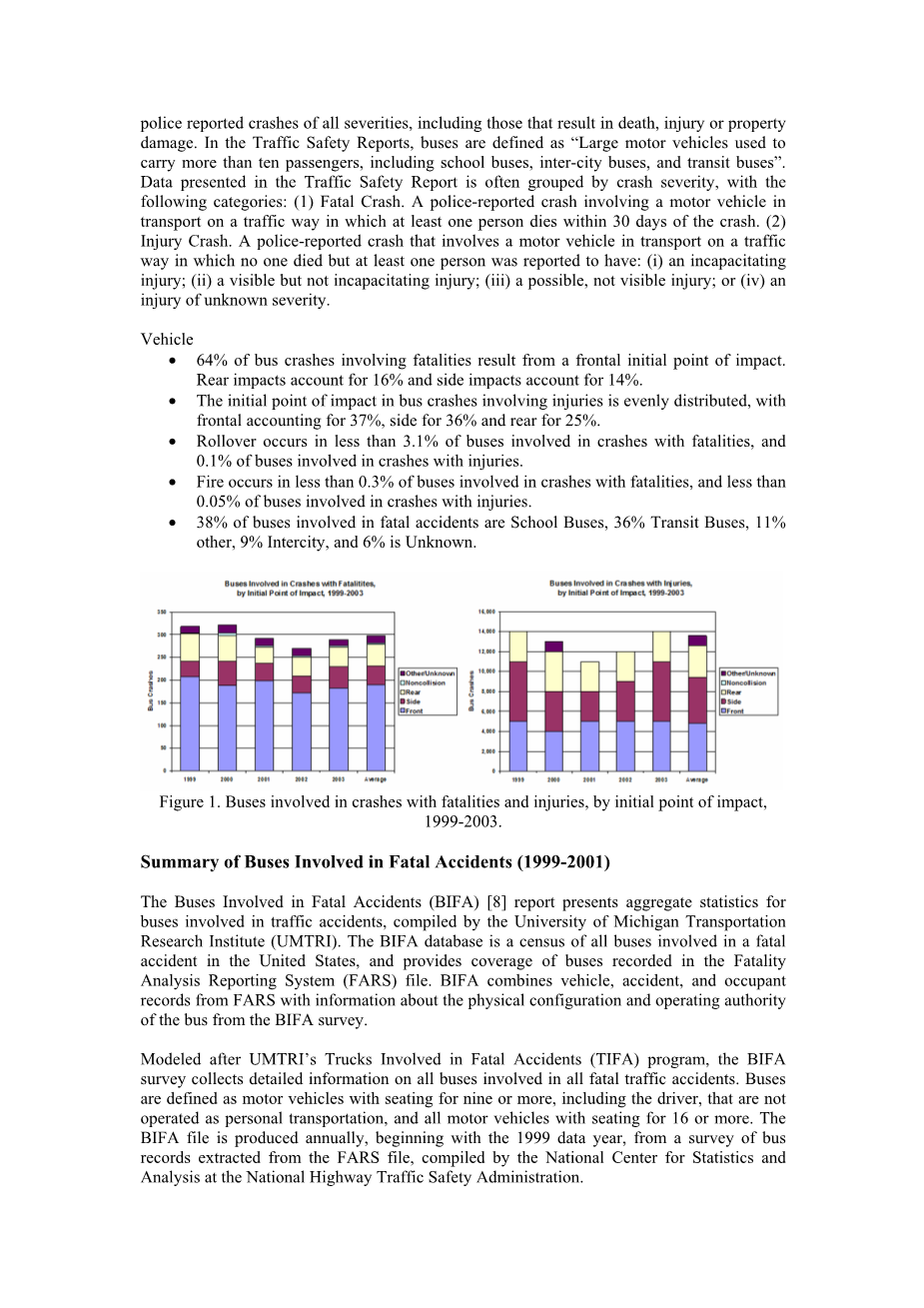 图1. 在最初的影响下,1999-2003年间,在碰撞中涉及死亡和受伤事故的公共汽车