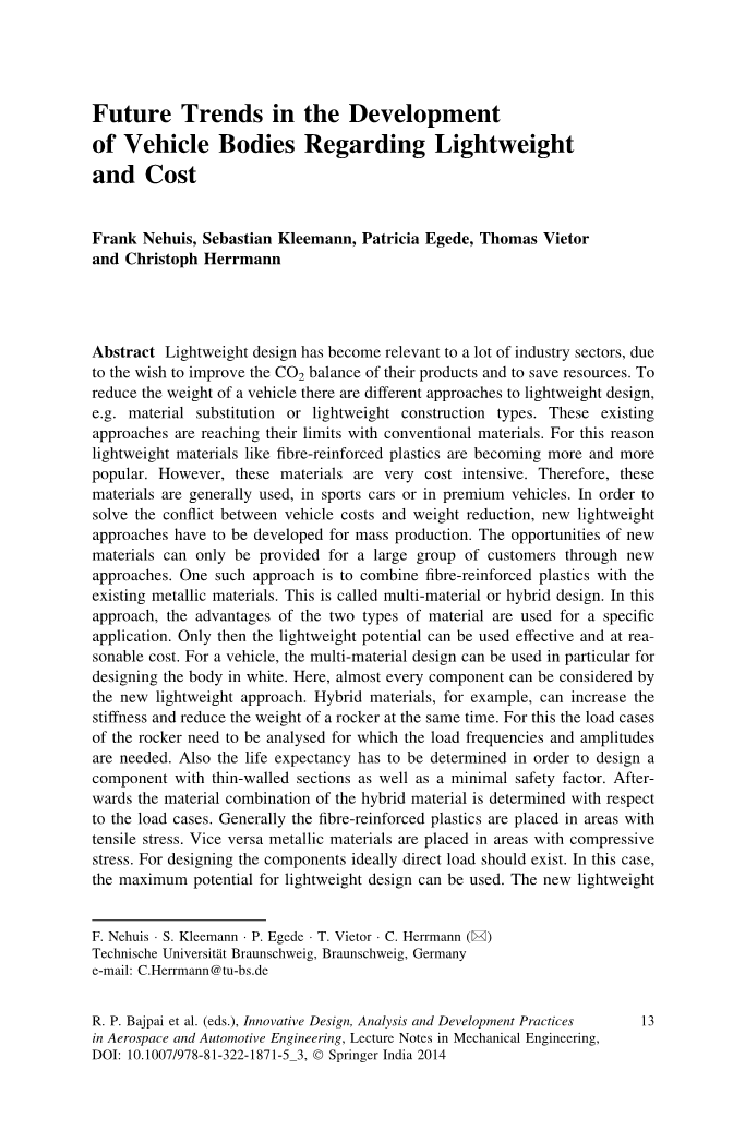 2. Nehuis F, Saacute;nchez Ruelas J, Stechert C, Vietor T (2013) Robust conception of vehicles considering region-specific requirements. In: Proceedings of the 19th international conference on engineering design (ICEDrsquo;13), Seoul
