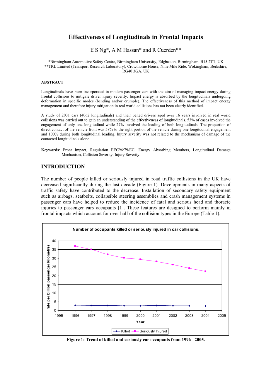E S Ng*, A M Hassan* and R Cuerden** *Birmingham Automotive Safety Centre, Birmingham University, Edgbaston, Birmingham, B15 2TT, UK **TRL Limited (Transport Research Laboratory), Crowthorne House, Nine Mile Ride, Wokingham, Berkshire, RG40 3GA, UK