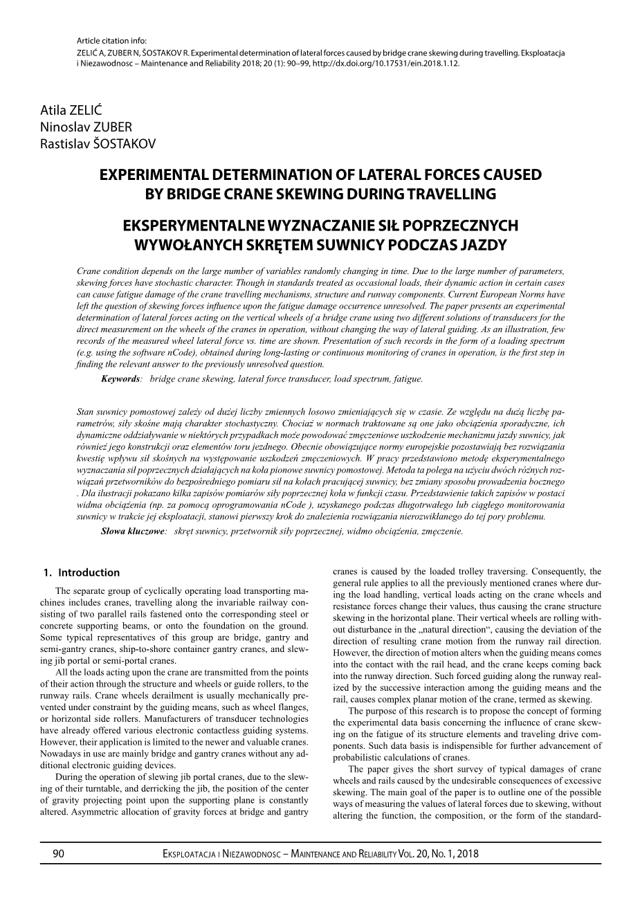 本文简要介绍了起重机车轮和钢轨的典型损坏情况,并对其产生的不良后果进行了分析。本文的主要目的是概述一种可能的方法,测量横向力的价值,限定只是倾斜,而不改变功能,组成,或形式的标准。