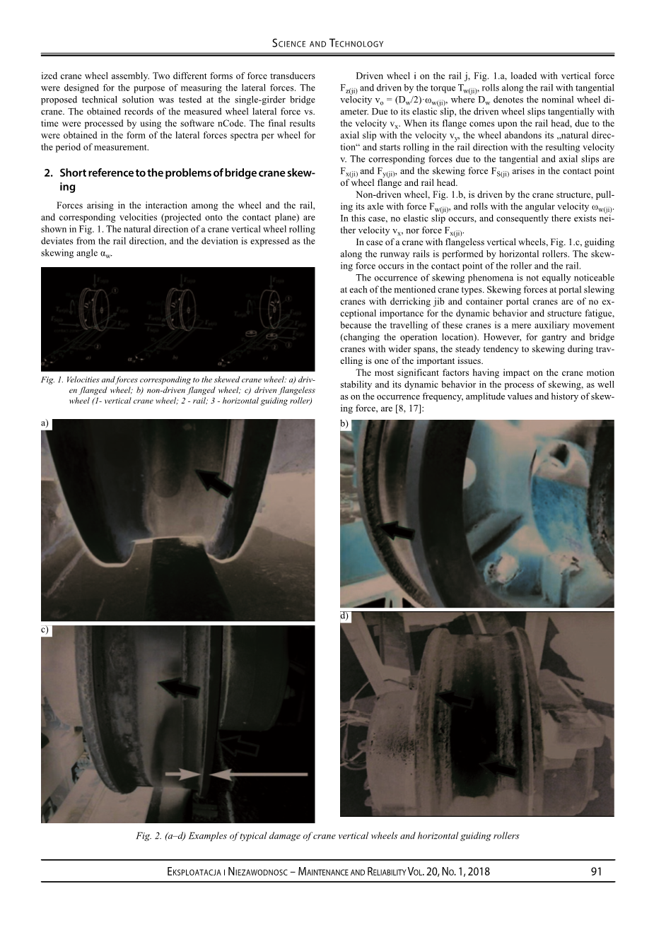 起重机的状况决定于其大量的随机变量随时间的变化情况。由于参数众多,因而斜交力具有随机性。尽管在某些情况下,它们的动态作用在会导致起重机的移动机构、结构和跑道部件的疲劳损坏。目前欧洲规范了扭曲力对疲劳损伤的影响的问题。摘要采用两种不同的换能器方法,对桥式起重机的垂直轮进行了横向力的实验测定,对起重机在运行过程中的直接测量进行了两种不同的求解,而不改变横向导向的方式。由于只是个例,因此没有多少车轮横向力和时间的记录。在对起重机进行长期或连续监测的过程中,以加载频谱(例如使用软件nCode)的形式呈现这些记录,是找到有关之前尚未解决的问题的相关答案的第一步。