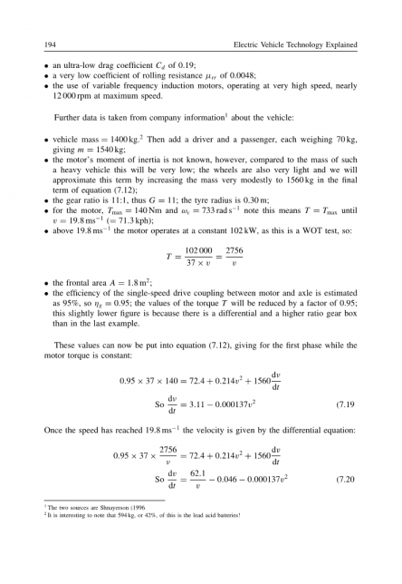 因为电动车辆通常只有一个齿轮,齿轮系统效率eta;g假定为常数。因为齿轮系统非常简单,效率通常很高。