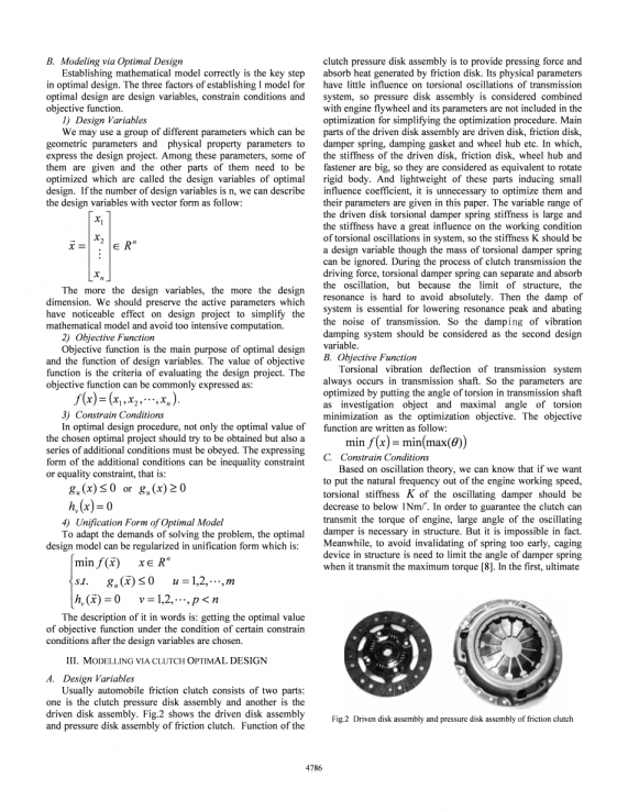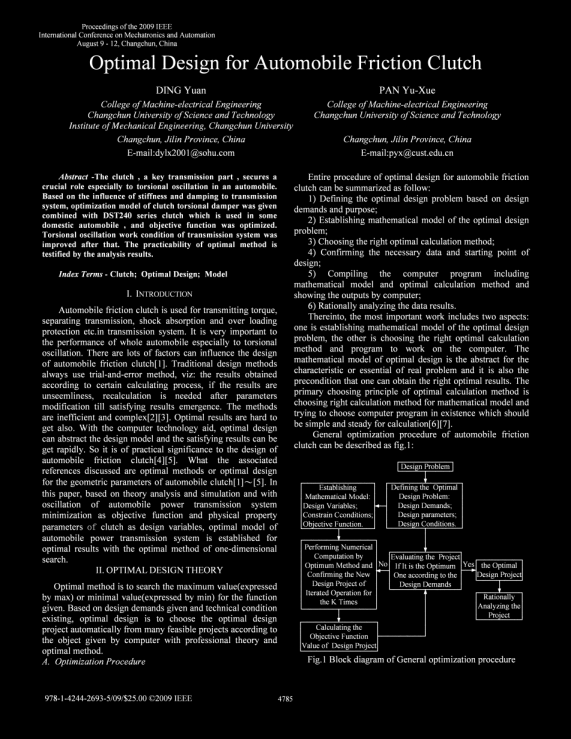 某A级轿车离合器设计外文翻译资料 2021-11-29 22:33:07 英语原文共 11 页 原文和译文剩余内容已隐藏,您需要先支付 30元 才能查看原文和译文全部内容!立即支付 发小红书推广免费获取该资料资格。点击链接进入获取推广文案即可: Ai一键组稿 | 降AI率 | 降重复率 | 论文一键排版 PREVIOUS NEXT 您可能感兴趣的文章 噪音和振动测量外文翻译资料 主动式横向稳定杆在车辆平顺性和稳定性上的应用外文翻译资料 干摩擦离合器系统的应力与变形分析外文翻译资料 电动转向模拟器的虚拟样机外文翻译资料 主动前转向系统控制策略研究外文翻译资料 横向冲击对汽车乘客颈椎反应的三维分析.外文翻译资料 对机车意外事故中新型胸腔安全系统的评估外文翻译资料 电动车动力传动系统性能分析解析算法的发展外文翻译资料 扁钢表面缺陷的自动检测:综述外文翻译资料 非线性规划二:无约束优化技术外文翻译资料