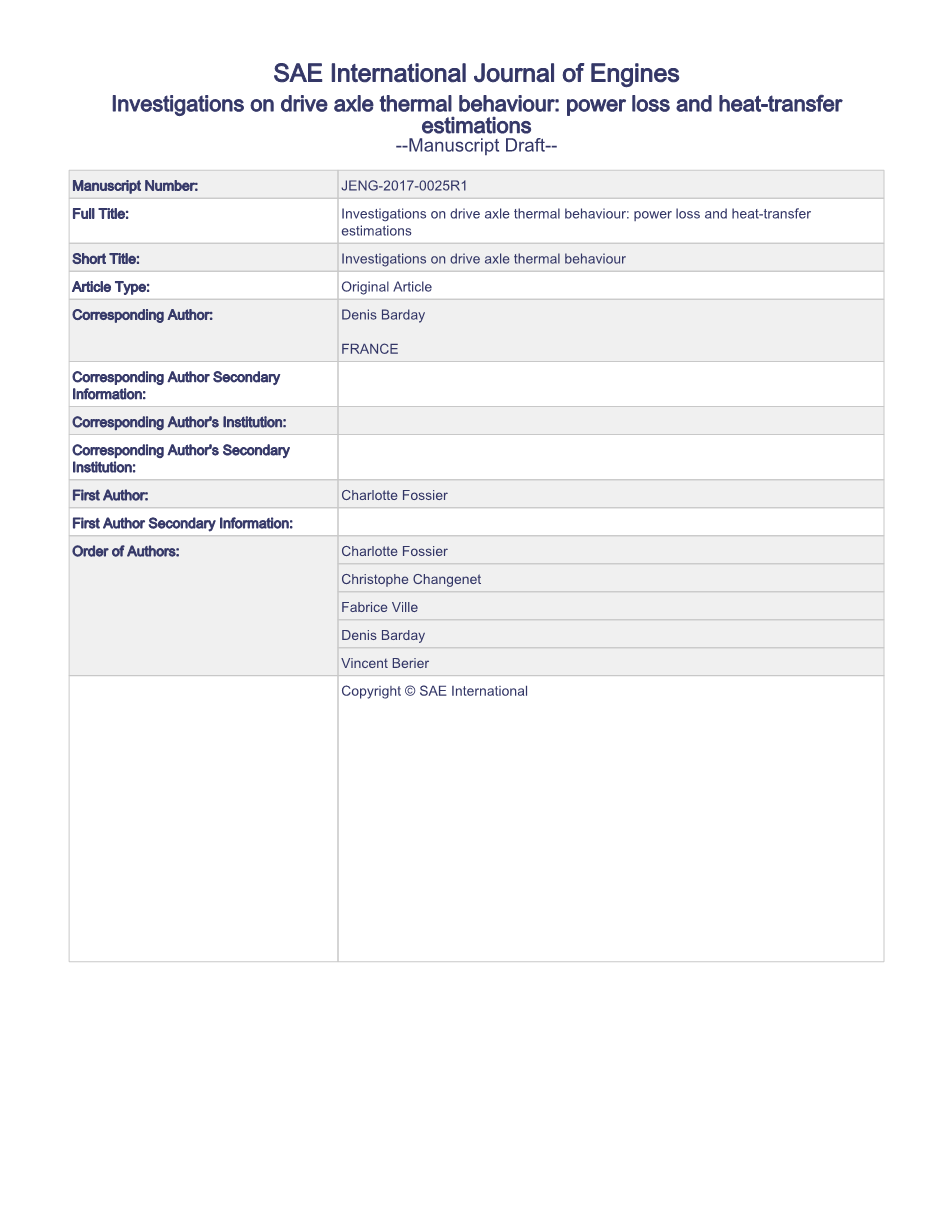 在本研究中,对卡车驱动桥及其齿轮组进行了分析。由于齿轮组是准双曲面或螺旋锥,滑齿。摩擦是消耗的一个重要来源。其他损失主要是由于滚动轴承和油液。能量损失是根ISO技术报告的关系计算的。与试验结果比较表明,以前的公式的修改是应该的.还对热交换进行了评述。最后,两种比较了齿轮组本体温度的方法,只考虑齿轮组的经典方法和用热网络法考虑全轴的全局方法。