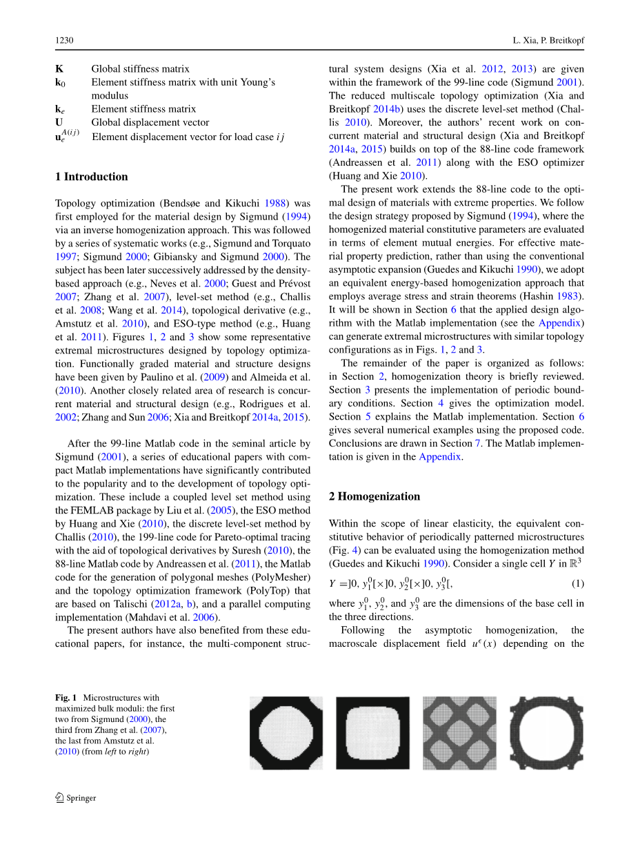 论文的其余部分安排如下:第2节简要介绍了均匀化理论。第3节介绍了周期边界条件的实现方法。第4节给出了优化模型。第5节解释了MATLAB的实现方法。第6节列举出了几个使用本文所提出代码的例子。第7节得出结论。MATLAB的安装和使用在附录中给出。