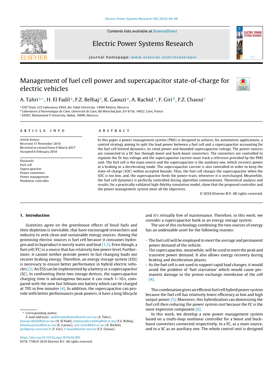 燃料电池,超级电容器,电源转换器,能源管理,非线性控制器