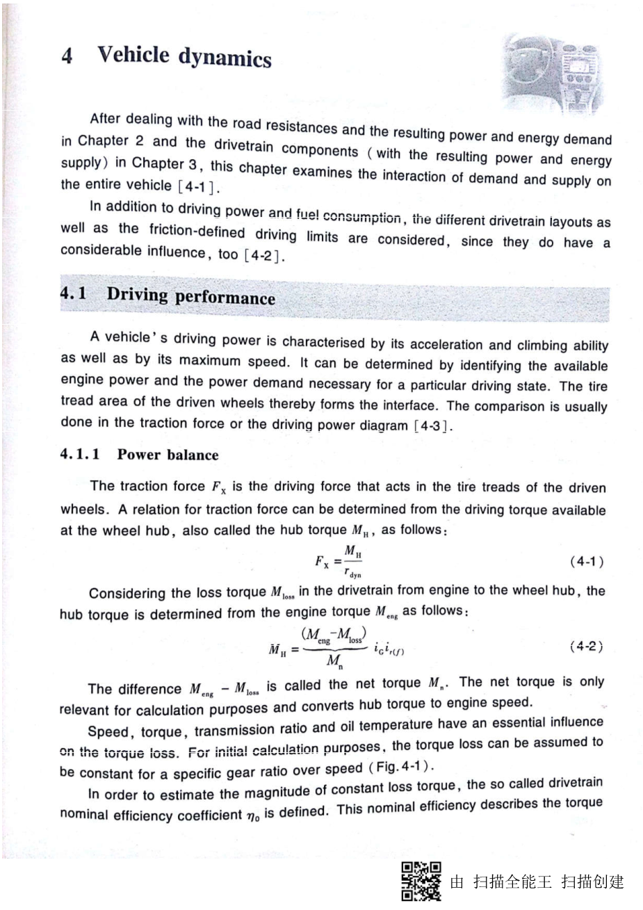 在考虑了道路阻力和相应的功率、能量需求(第二章)和驱动零部件以及相应功率、能量供应(第三章)后,本章将介绍在整车上供应和需求的相互作用。
