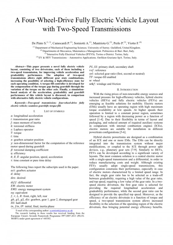 De Pinto S.(1, 2),Camocardi P.(1),Sorniotti A.(1), Mantriota G.(2),Perlo P.(3),Viotto F.(4)