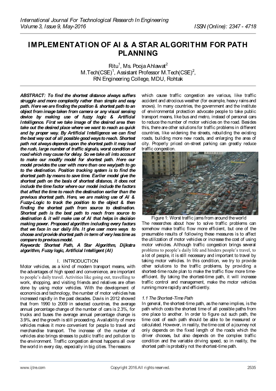 寻找最短的路径相较于简单和容易的路径往往会遭遇更多的困难与复杂性。在此,利用模糊逻辑和人工智能算法,从摄像头或任何视觉传感设备拍摄的图像中找到对象的位置和最短路径。首先拍摄所需区域的图像,然后通过适当的方式快速找到想要达到的位置。通过人工智能,可以从所有可能的途径中找到最佳的路径。最短路径并不总是取决于最短的路程,交通拥堵,大量的交通信号和糟糕的道路条件可能会造成一定的延迟。因此,将所有可能的影响因素都考虑进去,使得修改模型更适合于求解最短路径。此模型为用户提供了多条去往目的地的路径。位置跟踪系统通过各种手段找到最短路径来节省时间。早期模型以最短距离为基础给出最短路径,它不包括时间因素。而改进的模型包含影响因素使得到达目的地的时间早于先前的最短路径。在此我们利用智能算法和模糊逻辑算法跟踪对象的位置,然后找到从起点到目的地的最短路径。最短路径是从起点到目的地的最佳路径,它将利用AI来辅助提升决策能力。提议的算法包括日常生活中所面对的每一个因素。与以往的模型相比,其在更短的时间内为用户提供了更多的选择和最短的路径。