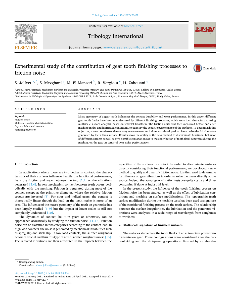 S. Jolivet a, *, S. Mezghani a, M. El Mansori b, R. Vargiolu c, H. Zahouani c