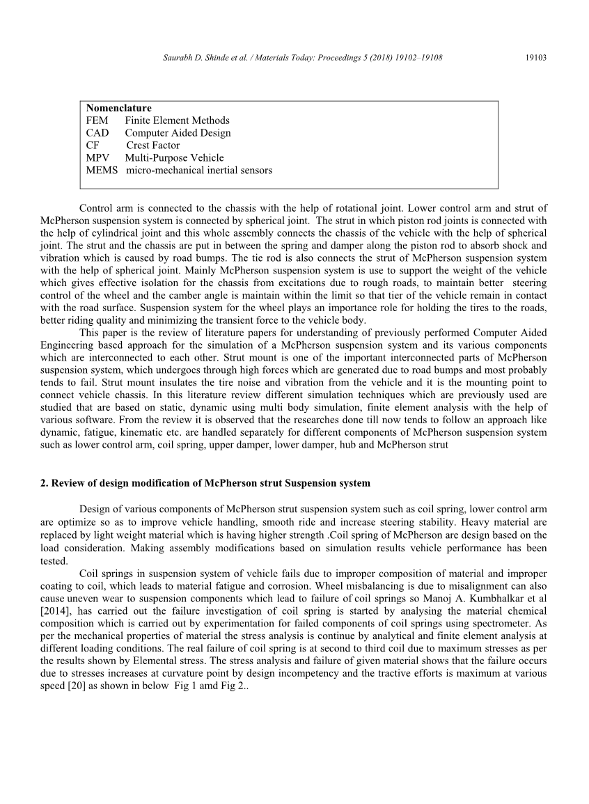 S.C. Jain等人[2014],已经研究了螺旋弹簧和麦弗逊悬架系统的工作,以提供更舒适的乘坐和悬架系统的修改。 根据文献中的变化结果,可以看出悬架系统中如何发生变化。 结果表明改进的悬架系统由于其改进的部件而提供比原始悬架系统更好的骑行质量[3]。