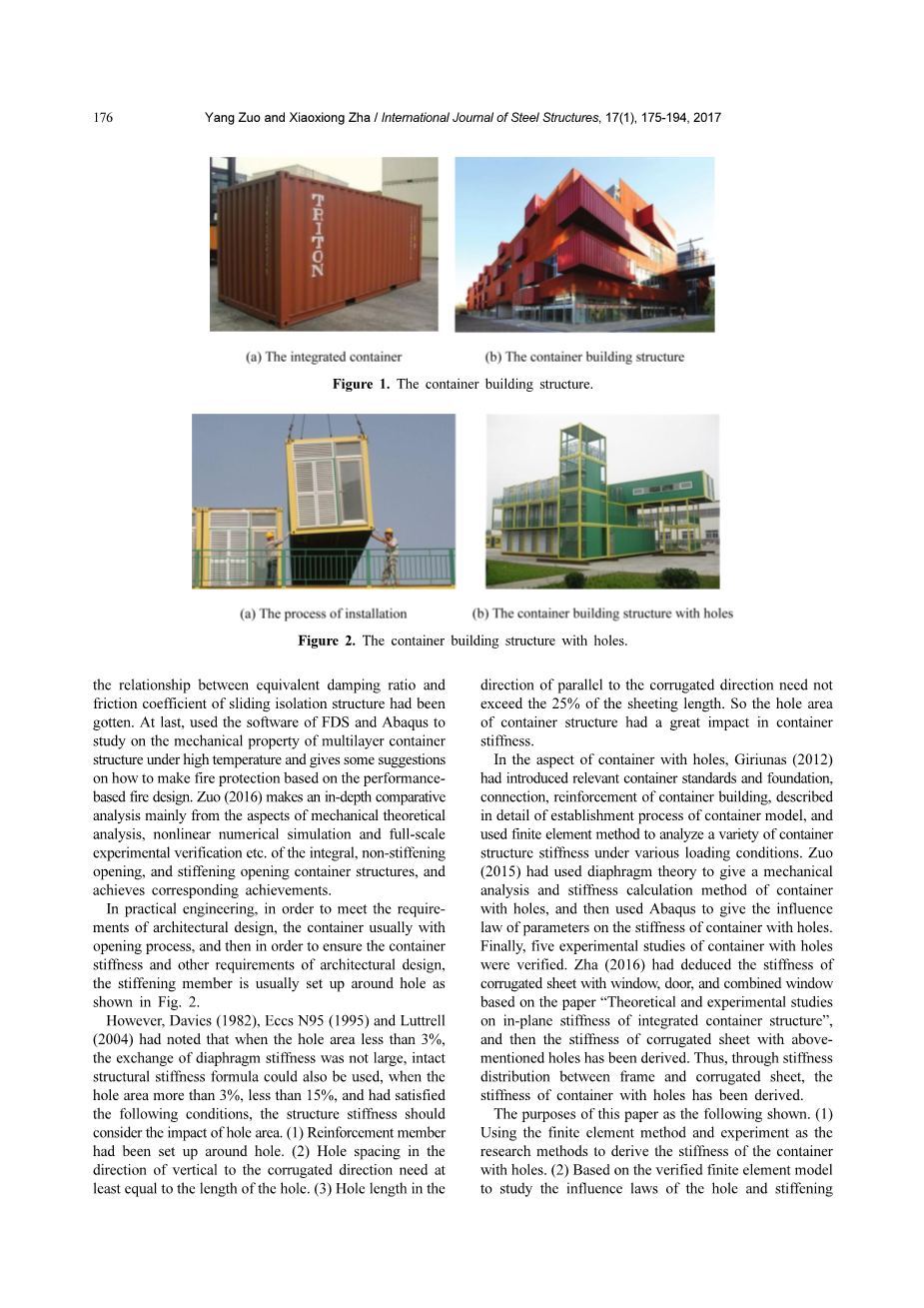 集装器越来越多地用于建筑结构,如图1所示。 集装箱建筑有许多优点和应用。 首先,集装箱钢是可回收的,从而减少了能源消耗和环境-精神污染。 其次,集装箱在工厂制造,整体运输,并在施工现场快速组装,从而实现了标准化的设计和结构。第三,根据建筑设计要求,容器可以组合成多种形式。 此外,集装箱不仅可用于一般住宅,也适用于公共建筑,如学校、医院等,救灾情况,野外建设,军事用途等。