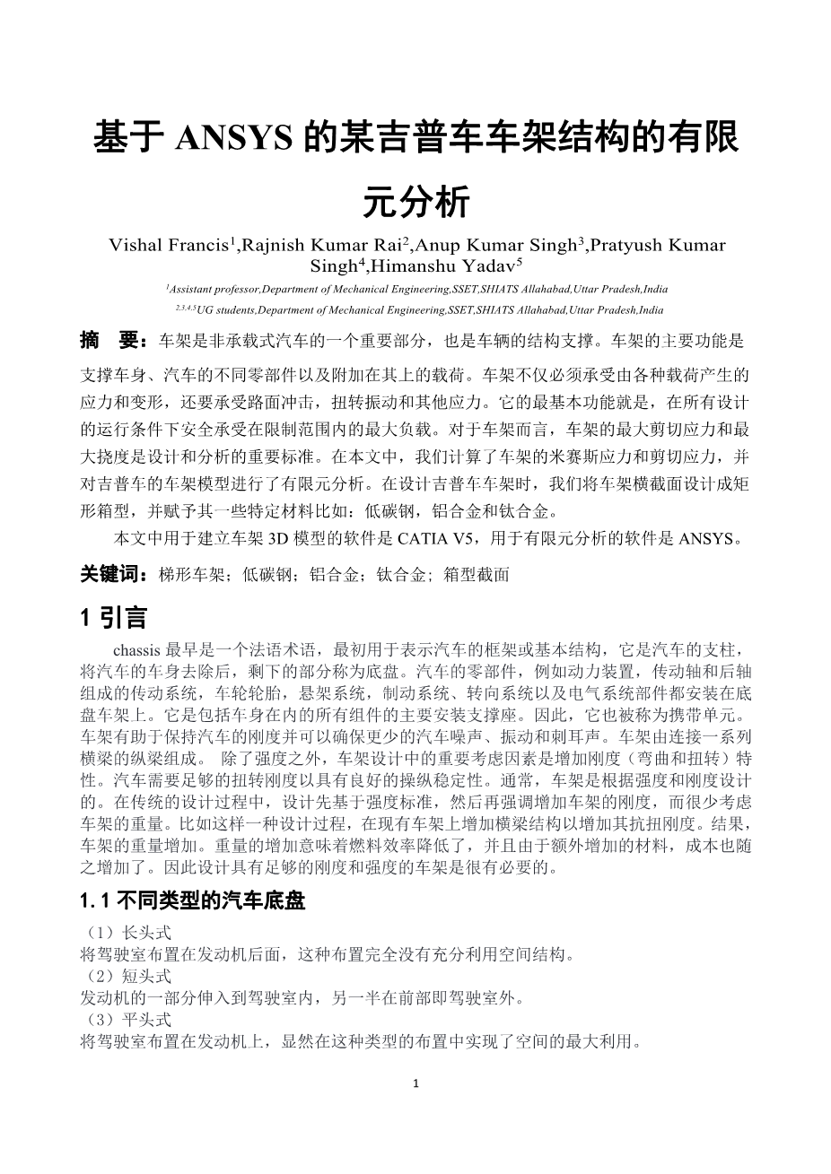 基于ANSYS的某吉普车车架结构的有限 元分析外文翻译资料 2022-08-11 14:09:29 英语原文共 10 页,剩余内容已隐藏,支付完成后下载完整资料 英语译文共 11 页,剩余内容已隐藏,支付完成后下载完整资料 资料编号:[237298],资料为PDF文档或Word文档,PDF文档可免费转换为Word 原文和译文剩余内容已隐藏,您需要先支付 30元 才能查看原文和译文全部内容!立即支付 发小红书推广免费获取该资料资格。点击链接进入获取推广文案即可: Ai一键组稿 | 降AI率 | 降重复率 | 论文一键排版 PREVIOUS NEXT 您可能感兴趣的文章 噪音和振动测量外文翻译资料 主动式横向稳定杆在车辆平顺性和稳定性上的应用外文翻译资料 干摩擦离合器系统的应力与变形分析外文翻译资料 电动转向模拟器的虚拟样机外文翻译资料 主动前转向系统控制策略研究外文翻译资料 横向冲击对汽车乘客颈椎反应的三维分析.外文翻译资料 对机车意外事故中新型胸腔安全系统的评估外文翻译资料 电动车动力传动系统性能分析解析算法的发展外文翻译资料 扁钢表面缺陷的自动检测:综述外文翻译资料 非线性规划二:无约束优化技术外文翻译资料